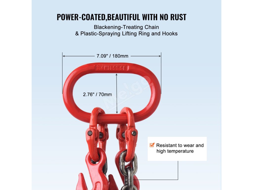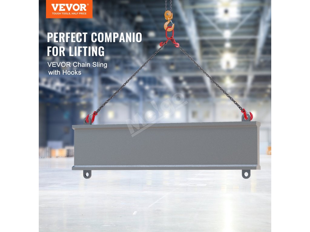 VEVOR, váš exkluzívny expert na náradie. Tento reťazový záves je vyrobený z vysokokvalitnej ocele. Má tiež háky s pružinovými jazýčkami na lepšie uchopenie a zaistenie veľkých nákladov.