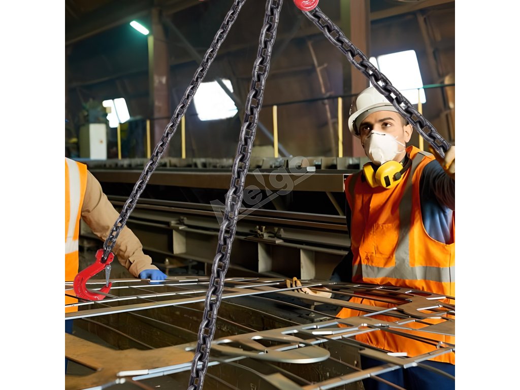 Táto zdvíhacia reťaz je vybavená pružinovým jazykom na bezpečné zdvíhanie predmetov. Dĺžku reťaze je možné ľahko nastaviť tak, aby vyhovovala závažiam s rôznym objemom.