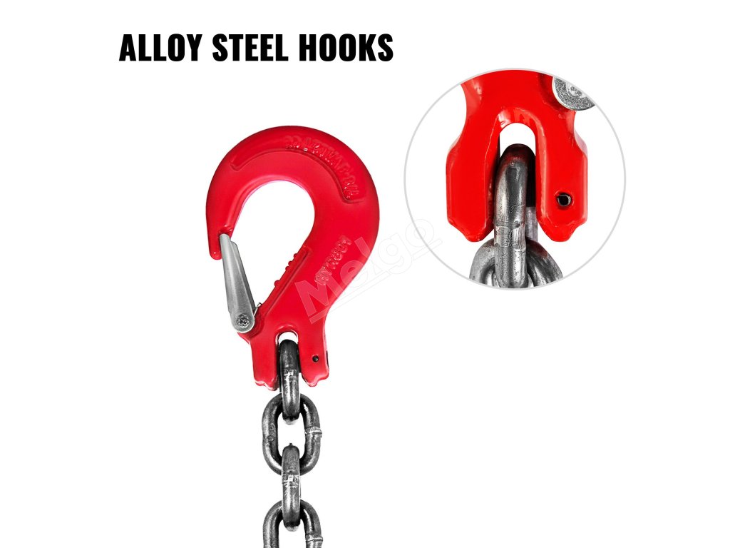 Hák nášho reťazového zdviháka je vybavený bezpečnostnou západkou, ktorá zabezpečí, že váš náklad zostane bezpečný a počas zdvíhania nespadne.