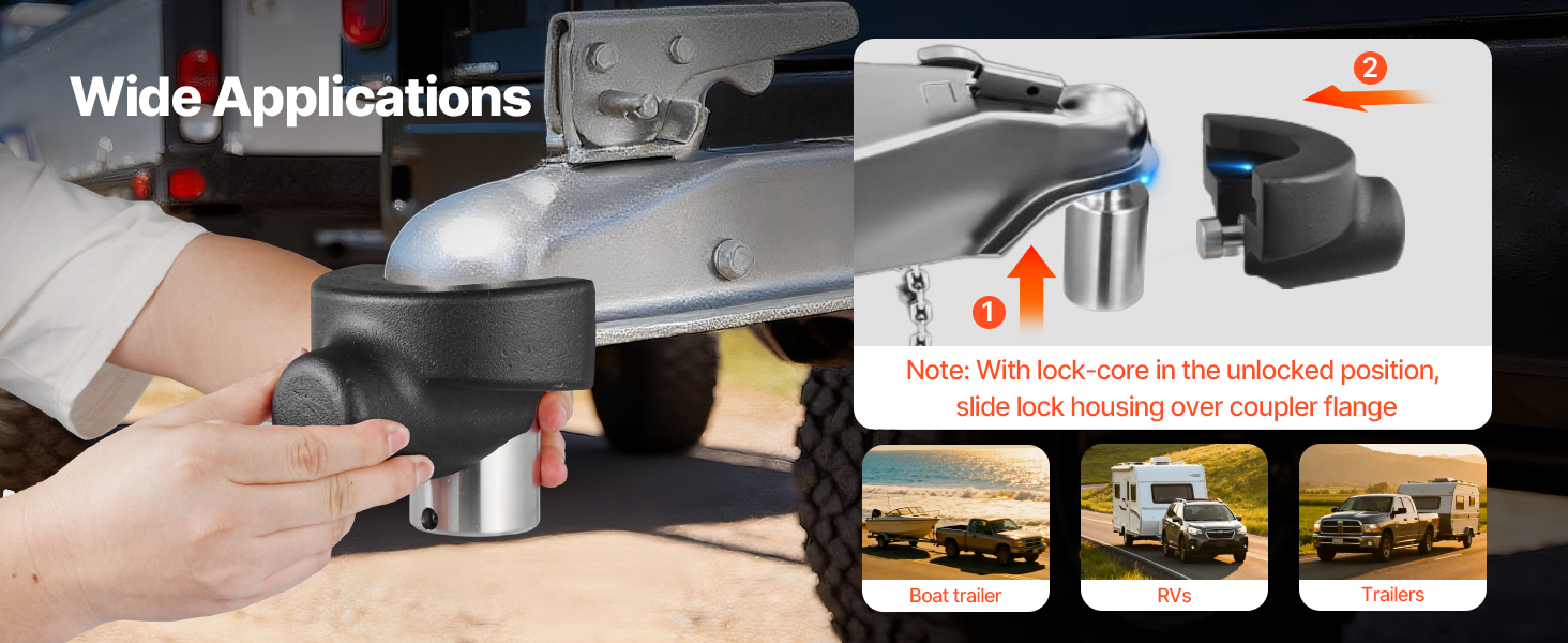Či už ťaháte príves, kempujete s karavanom alebo prepravujete loď, tento úžitkový zámok na príves poskytuje spoľahlivú ochranu. Je vhodný pre prívesy, obytné automobily, terénne vozidlá a lode, čím vám poskytne pokoj v každom scenári.