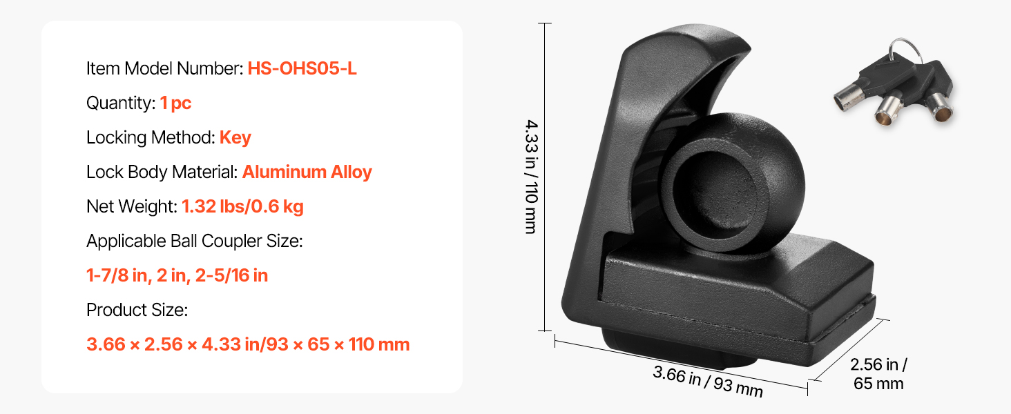 Tento univerzálny zámok guľového závesu je vhodný pre viacero bežných spojovacích zariadení. Je vyrobený z odolnej zliatiny s antikoróznou povrchovou úpravou a zaručuje dlhodobú pevnosť a odolnosť voči náročným podmienkam. Jeho jedinečná konštrukcia proti krádeži zabraňuje vypáčeniu a nárazom, zatiaľ čo jednoduché ovládanie uľahčuje zamykanie a odomykanie.