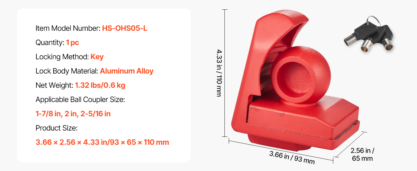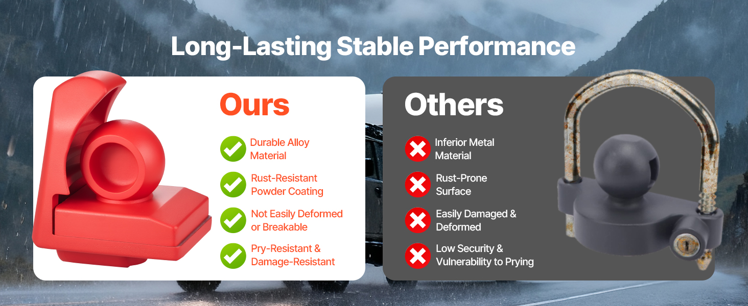 Tento univerzálny zámok guľového závesu je vhodný pre viacero bežných spojovacích zariadení. Je vyrobený z odolnej zliatiny s antikoróznou povrchovou úpravou a zaručuje dlhodobú pevnosť a odolnosť voči náročným podmienkam. Jeho jedinečná konštrukcia proti krádeži zabraňuje vypáčeniu a nárazom, zatiaľ čo jednoduché ovládanie uľahčuje zamykanie a odomykanie.