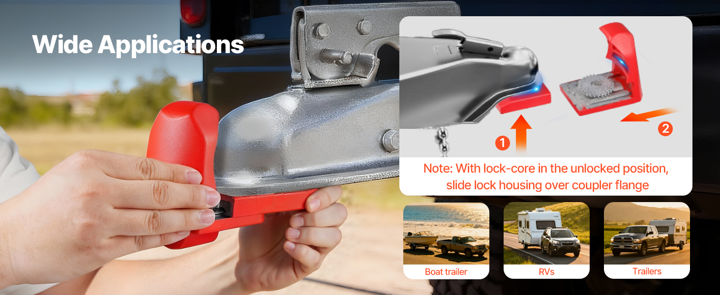 Či už ťaháte príves, kempujete s karavanom alebo prepravujete loď, tento úžitkový zámok na príves poskytuje spoľahlivú ochranu. Je vhodný pre prívesy, obytné automobily, terénne vozidlá a lode, čím vám poskytne pokoj v každom scenári.