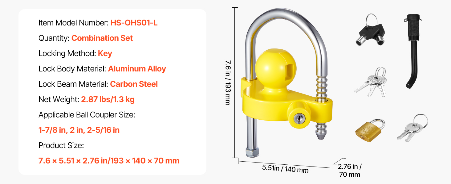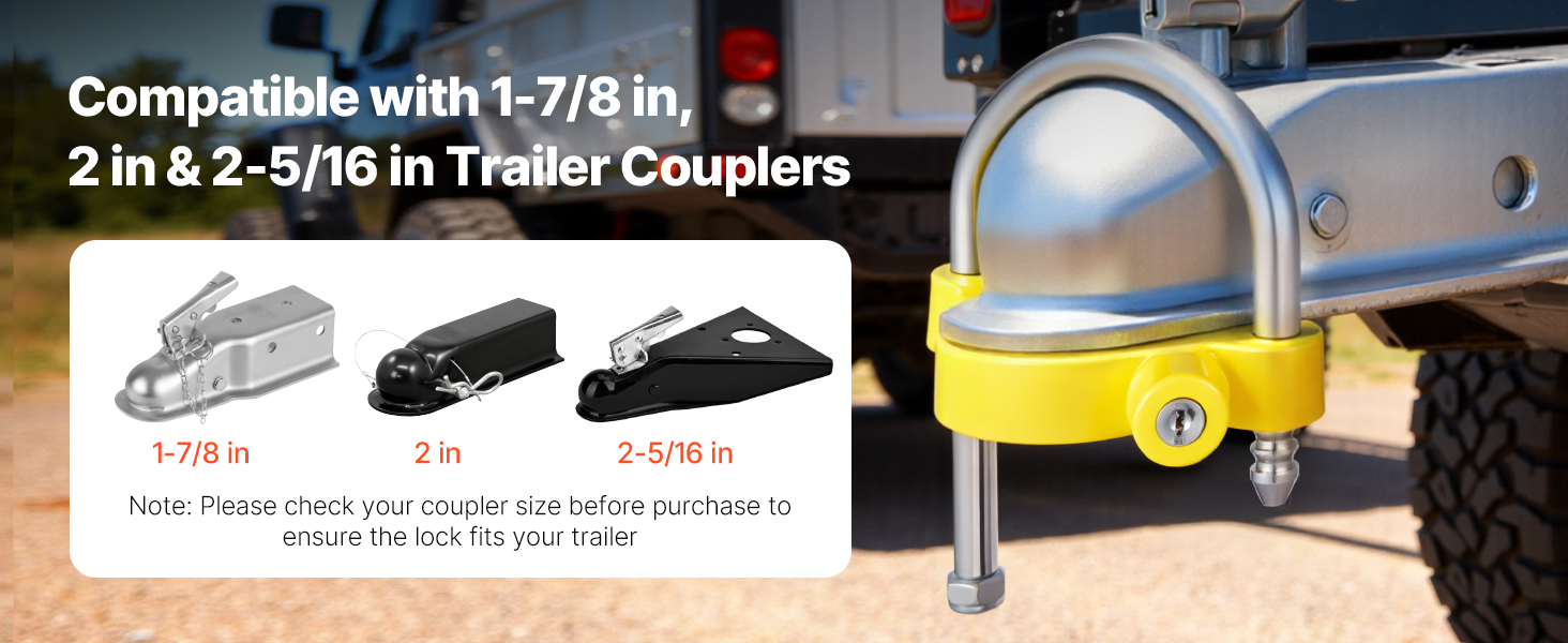 Náš zámok závesu prívesu je kompatibilný so spojovacími zariadeniami prívesu s priemerom 1-7/8 palca, 2 palce a 2-5/16 palca, čo poskytuje širokú prispôsobivosť. Pred nákupom si skontrolujte veľkosť svojho spojovacieho zariadenia, aby ste sa uistili, že zámok je vhodný pre váš príves.