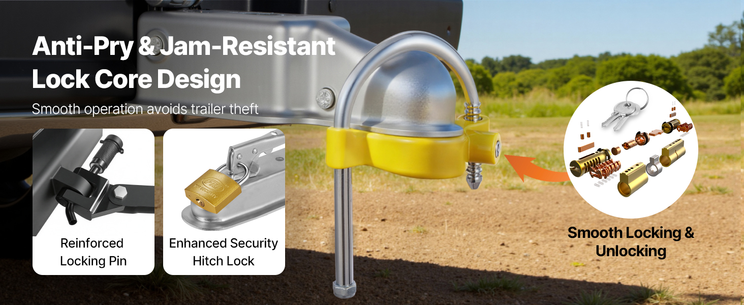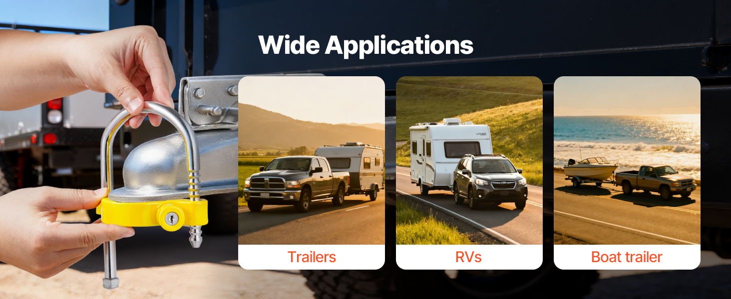 Či už ťaháte príves, kempujete s karavanom alebo prepravujete loď, tento úžitkový zámok na príves poskytuje spoľahlivú ochranu. Je vhodný pre prívesy, obytné automobily, terénne vozidlá a lode, čím vám poskytne pokoj v každom scenári.