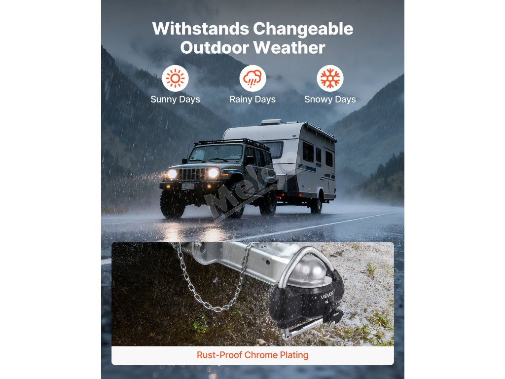 Tento guľový zámok prívesu, ktorý je vybavený odolnou zinkovou zliatinou, poskytuje pevnú konštrukciu, ktorá odolá deformácii alebo rozbitiu. Jeho pochrómovaný povrch je odolný voči korózii a korózii, čím sa prispôsobuje rôznym nepriaznivým podmienkam. Vysokopevnostná konštrukcia zabraňuje páčeniu a nárazom, čím udržiava váš príves v bezpečí.