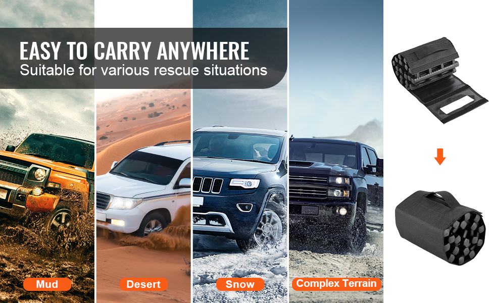Keď sa vyprosťovacie trakčné rohože nepoužívajú, dajú sa ľahko zrolovať a uložiť do prepravnej tašky, takže sú prenosné a vhodné pre akýkoľvek scenár záchrany vozidla. Toto nevyhnutné bezpečnostné príslušenstvo je ideálne pre odvážnych off-roadistov a všetkých, ktorí jazdia v náročných poveternostných podmienkach.