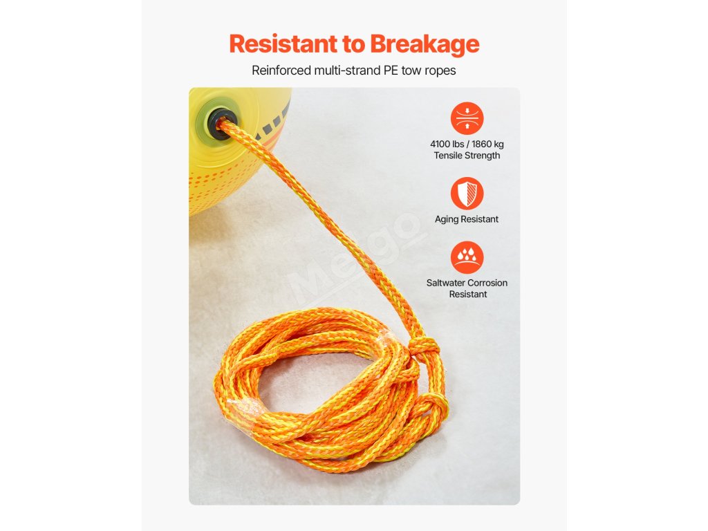 Naša posilňovacia guľa pre vlečné tuby je dokonalým spoločníkom pri vašich vodných dobrodružstvách, pretože ponúka zníženú pomoc pri odpore, zvýšenú odolnosť a vysokú pevnosť v ťahu. Udržuje ťažné lano mimo vody, vďaka čomu je ťahanie plynulejšie a efektívnejšie a zároveň zabezpečuje bezpečnejšiu a vzrušujúcu jazdu.