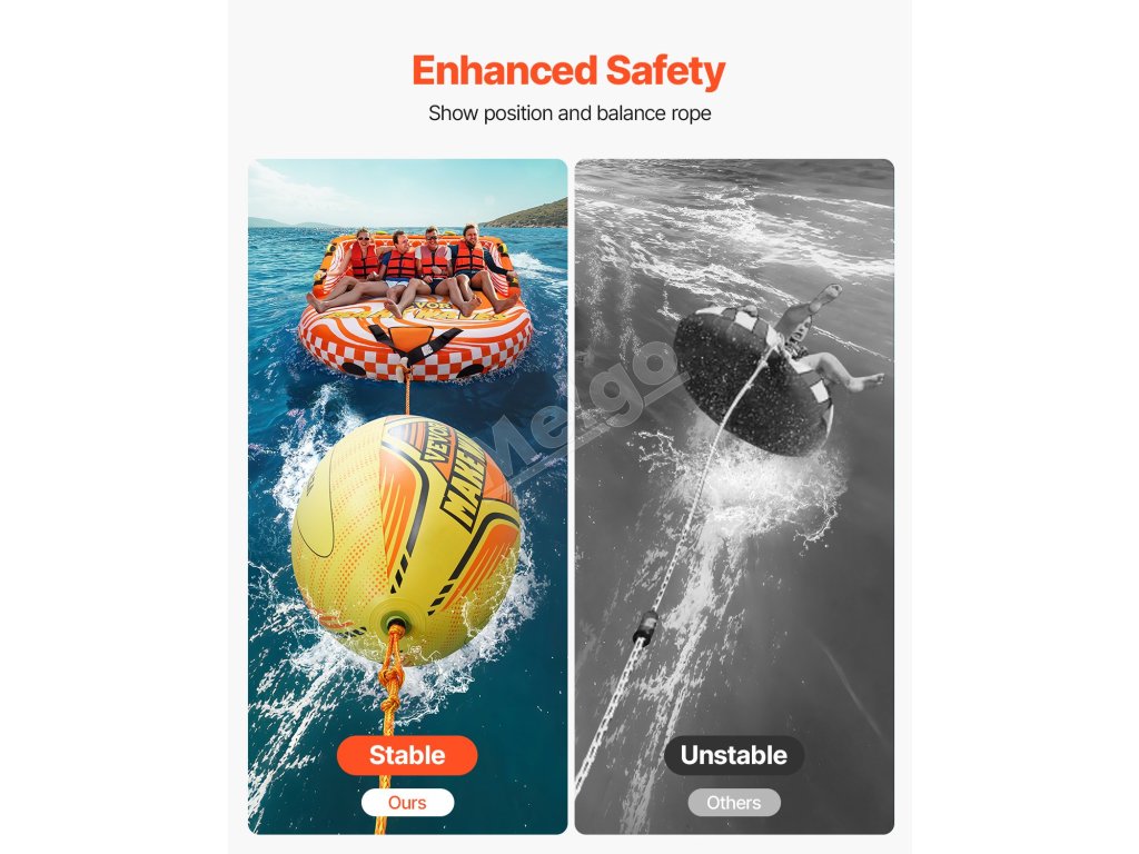 Posilňovacia guľa je navrhnutá v jasných, žiarivých farbách, ktoré používateľom uľahčujú rozpoznanie ťažného lana a nafukovacieho ťažného zariadenia na vode, čo zvyšuje bezpečnosť.