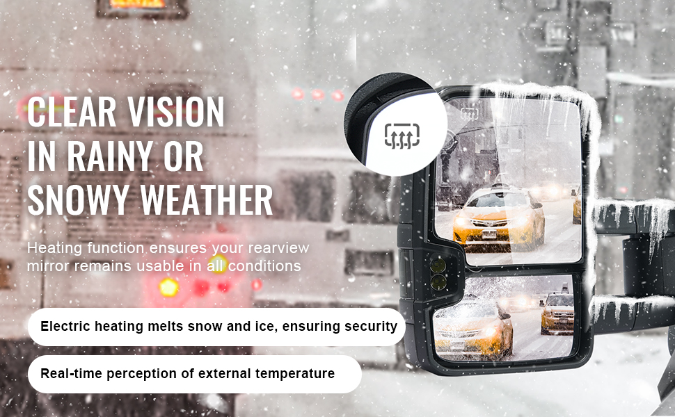 Nedovoľte, aby vám výhľad zakryl dážď alebo sneh! Naše zrkadlá pre nákladné vozidlá sú vybavené vyhrievaním, ktoré ich udržiava čisté a bez zahmlievania, vďaka čomu budete mať vždy jasný výhľad na to, čo je za vami.