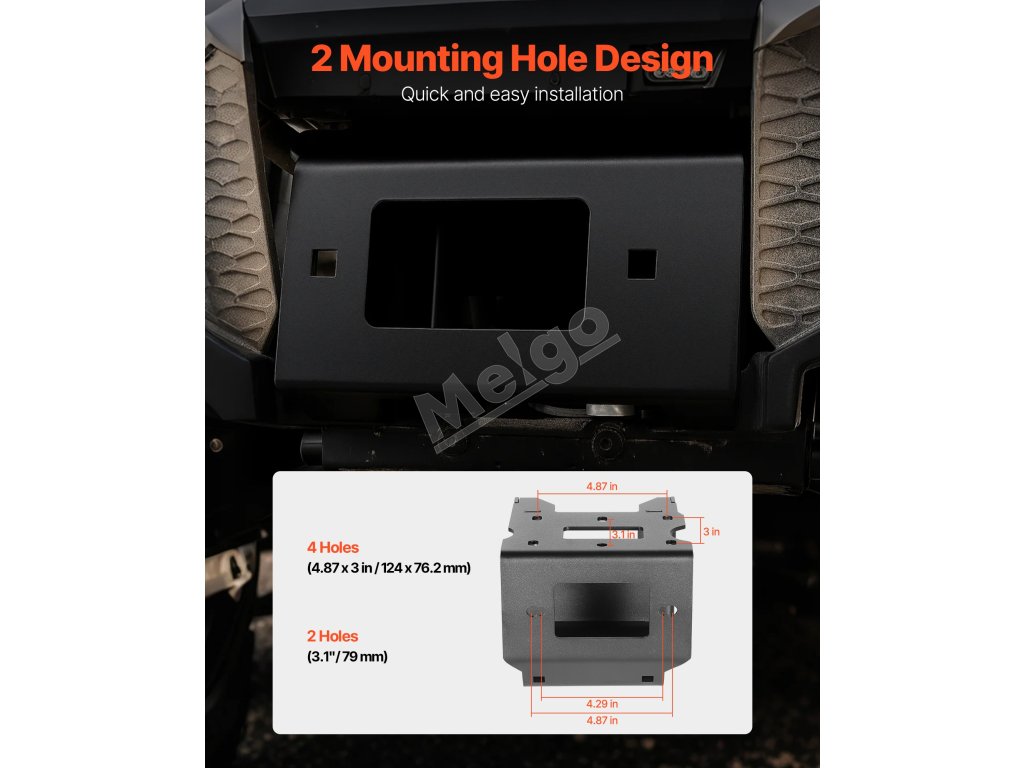 Vďaka dvom prednastaveným montážnym otvorom sa tento držiak navijaka prispôsobí širšiemu spektru inštalácií navijakov, čím zvyšuje kompatibilitu a uľahčuje používateľom inštaláciu.