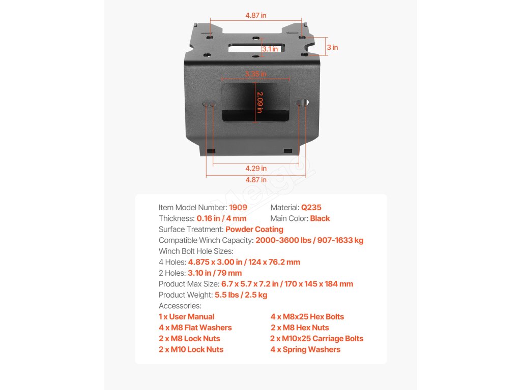 Tento široko kompatibilný držiak navijaka s ťažnou kapacitou 2000 - 3600 lbs si ľahko poradí s vyslobodzovaním z bahna a piesku, vďaka čomu sa stane vaším spoľahlivým spoločníkom pri terénnych dobrodružstvách a záchranných akciách.