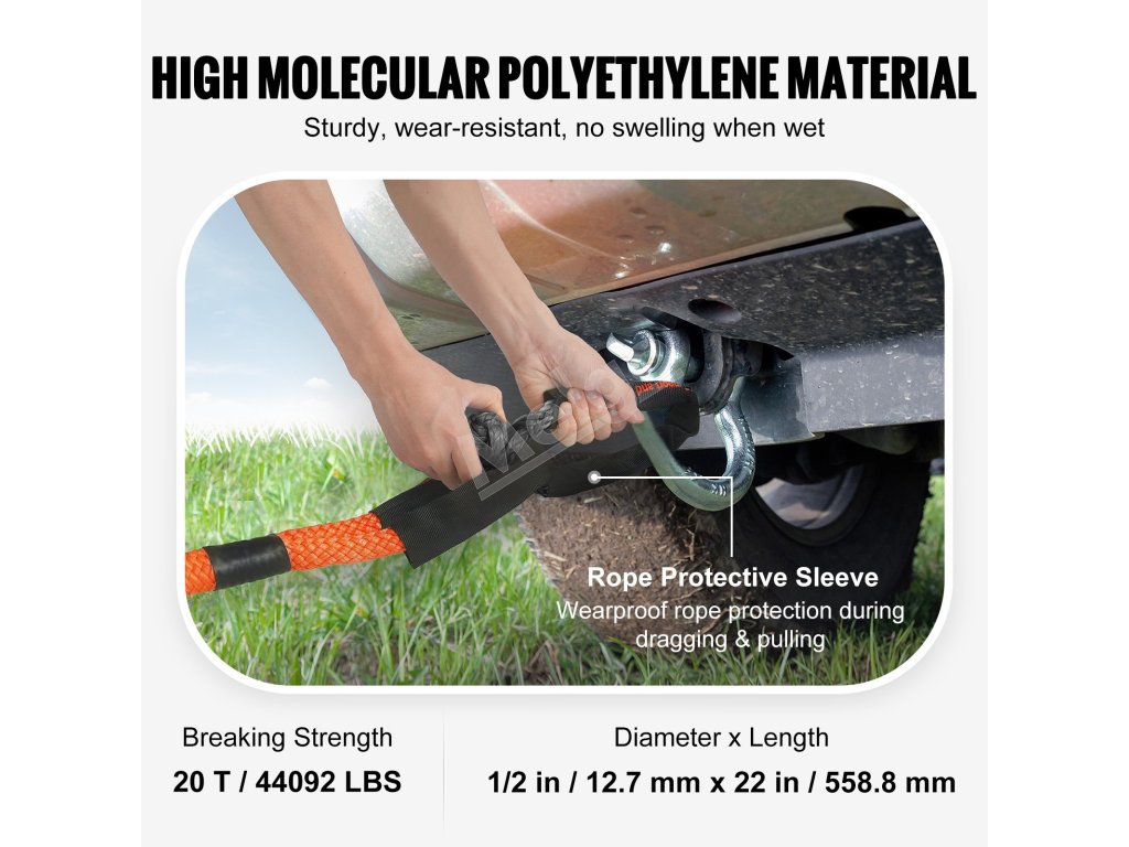 Naše mäkké pútko vyrobené z vysokomolekulárneho polyetylénu sa môže pochváliť pevnosťou v ťahu až 44092 lbs/20T s vlastnosťami odolnými proti opotrebovaniu. Obsahuje ochrannú objímku, ktorá minimalizuje opotrebovanie lana počas ťahania.