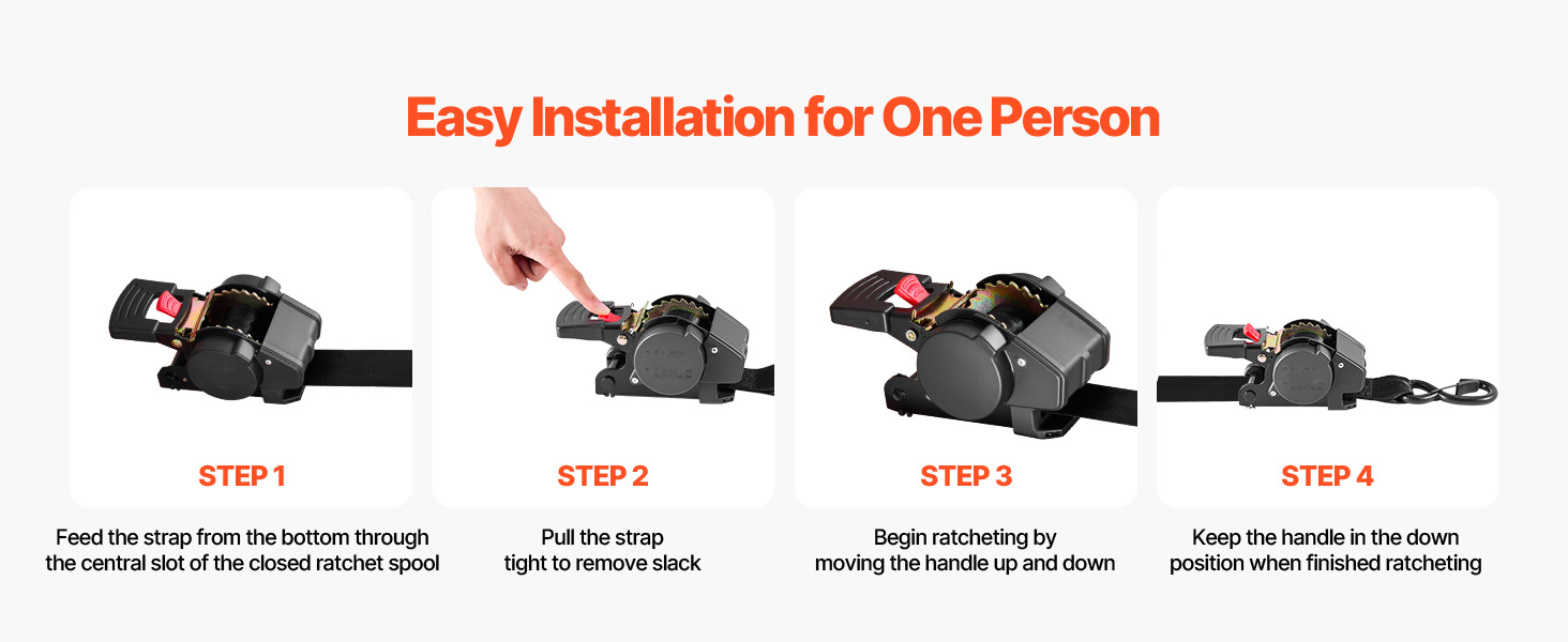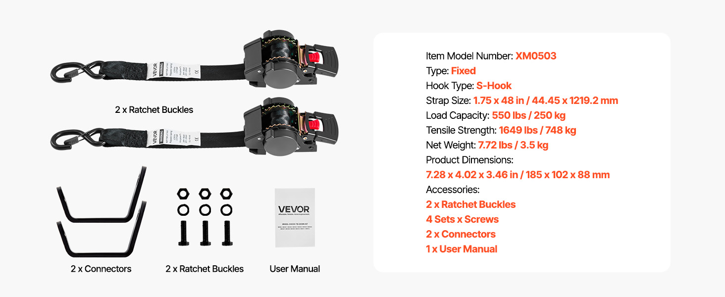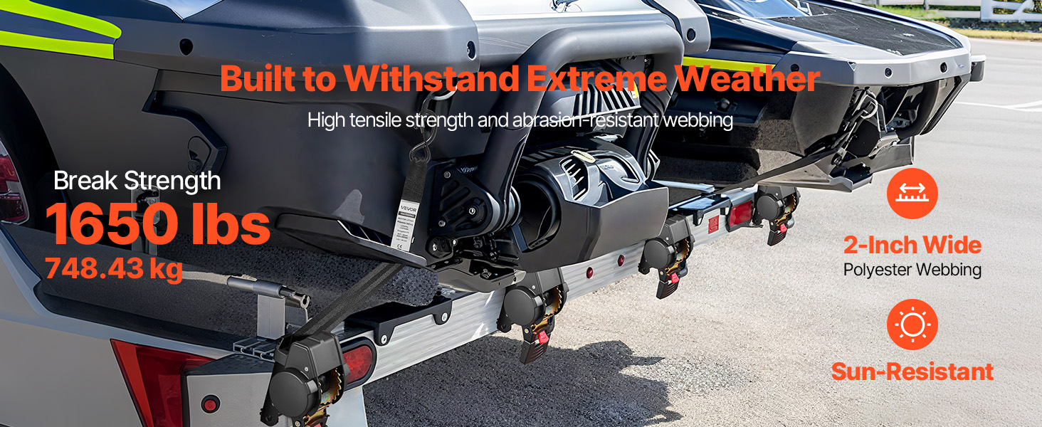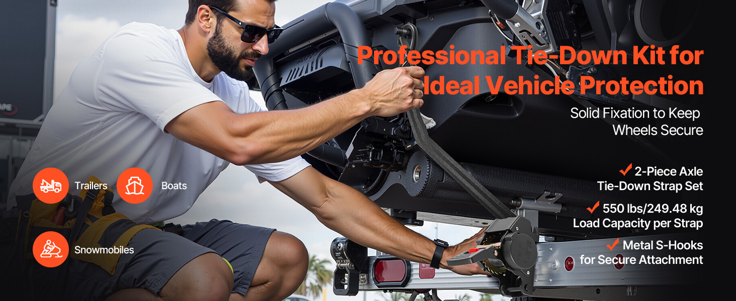 S touto súpravou na viazanie klinov pre kolesá prekročíte rámec bežných popruhov na pneumatiky. Je navrhnutá na dosiahnutie vynikajúcej stability vozidla a zabezpečuje vaše vozidlo bez toho, aby zaťažovala pneumatiky alebo odpruženie. Každý popruh unesie až 550 lbs/250 kg a udrží vaše vozidlo v pevnej polohe počas prepravy alebo parkovania.