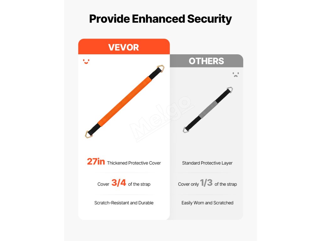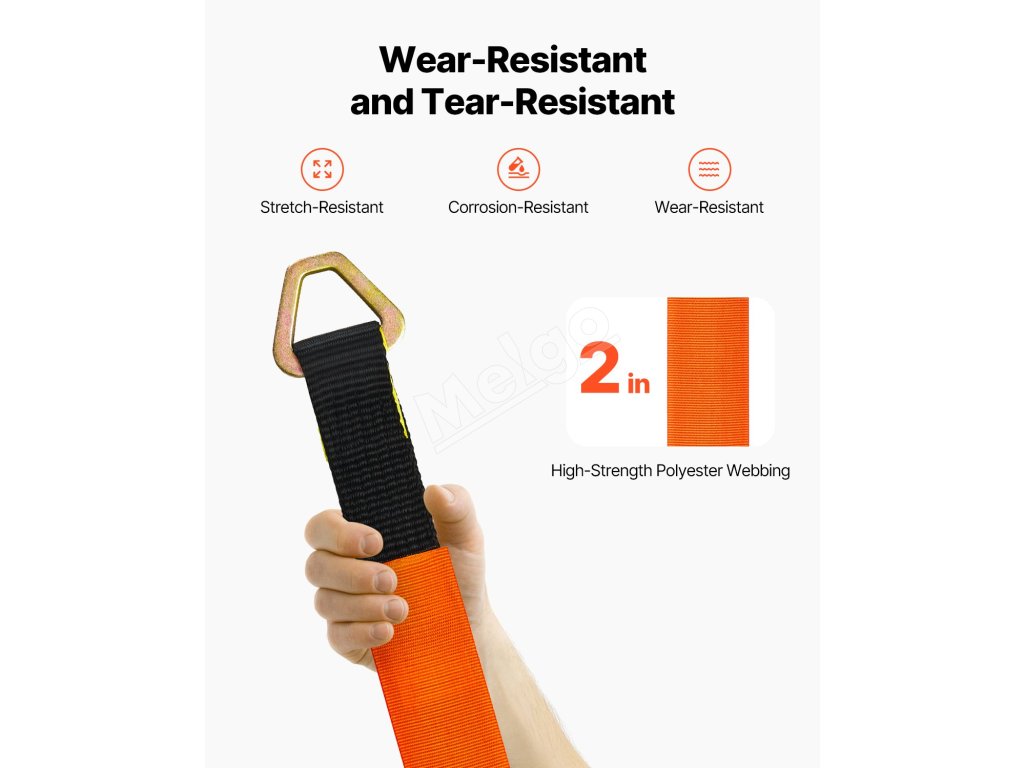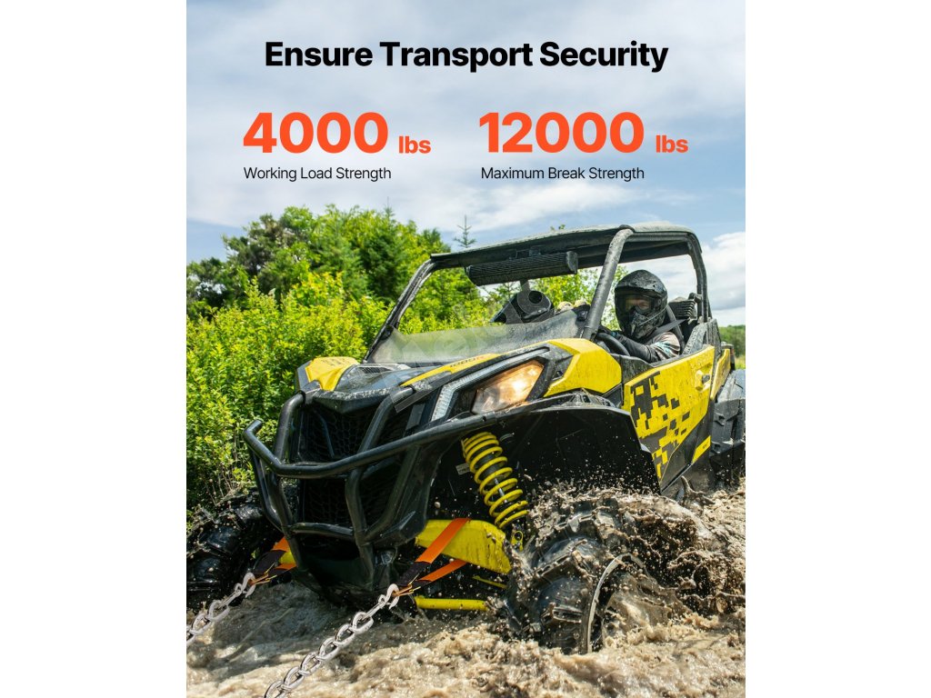 Naše popruhy na nápravu majú pevnosť v pretrhnutí 12 000 libier a menovitú nosnosť 4 000 libier, čo zaručuje silný výkon aj v extrémnych podmienkach.