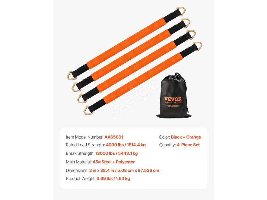 Upínacie popruhy na nápravu 2 in × 3.2 ft, 12000 lbs, d-krúžky, 4 ks