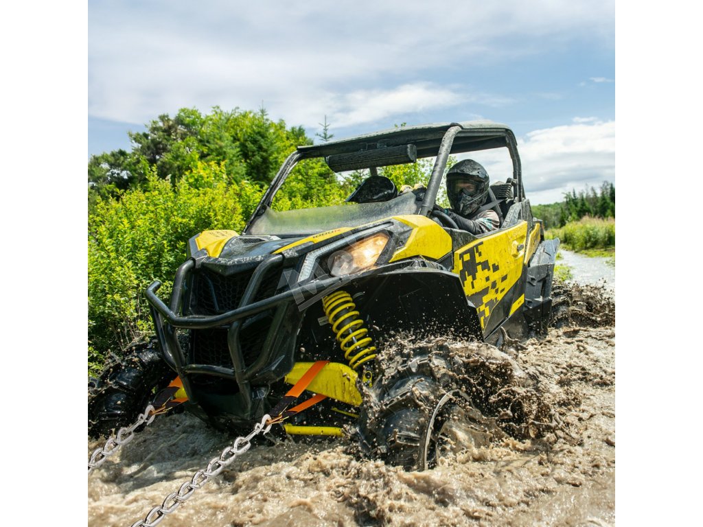 Tento popruh na nápravu ponúka pevnosť pri pretrhnutí 12 000 libier a menovité zaťaženie 4 000 libier. Silné D-krúžky sú vhodné pre rôzne háky. Jednoducho ho oviňte okolo nápravy alebo náboja a pripojte. Objímka s priemerom 27 cm a zosilnené šitie zaručujú odolnosť.