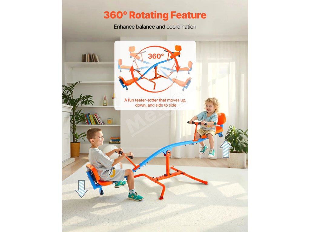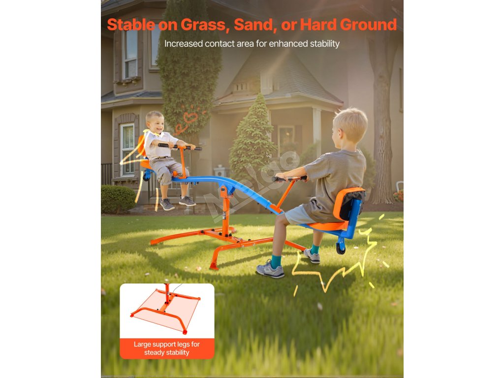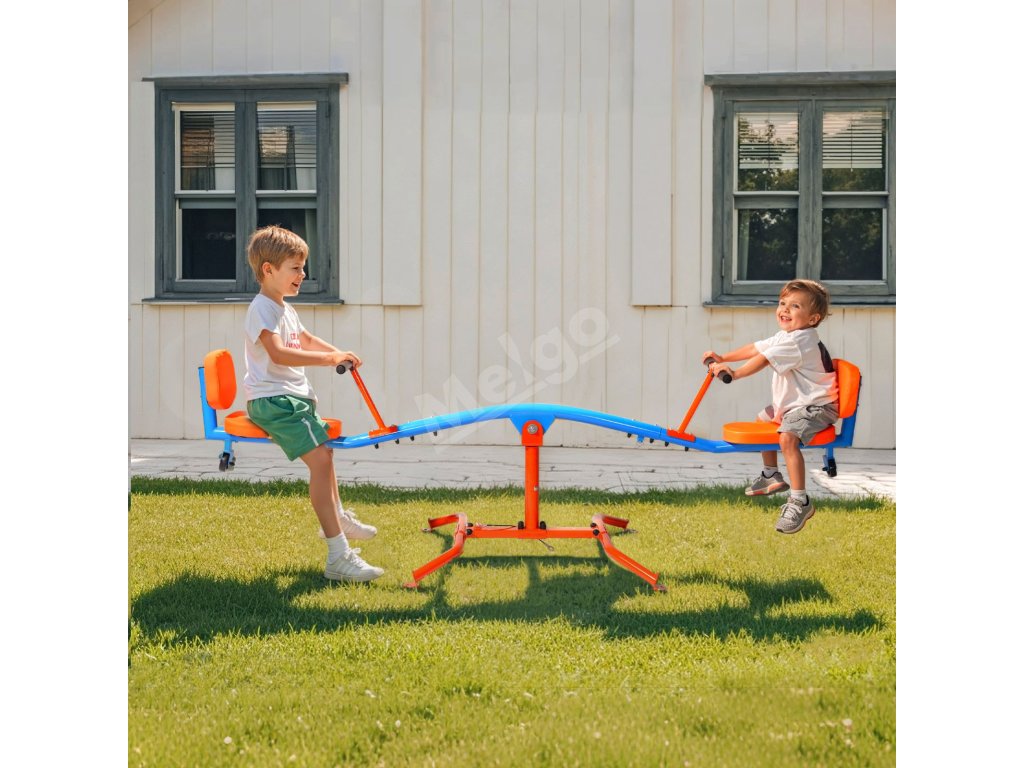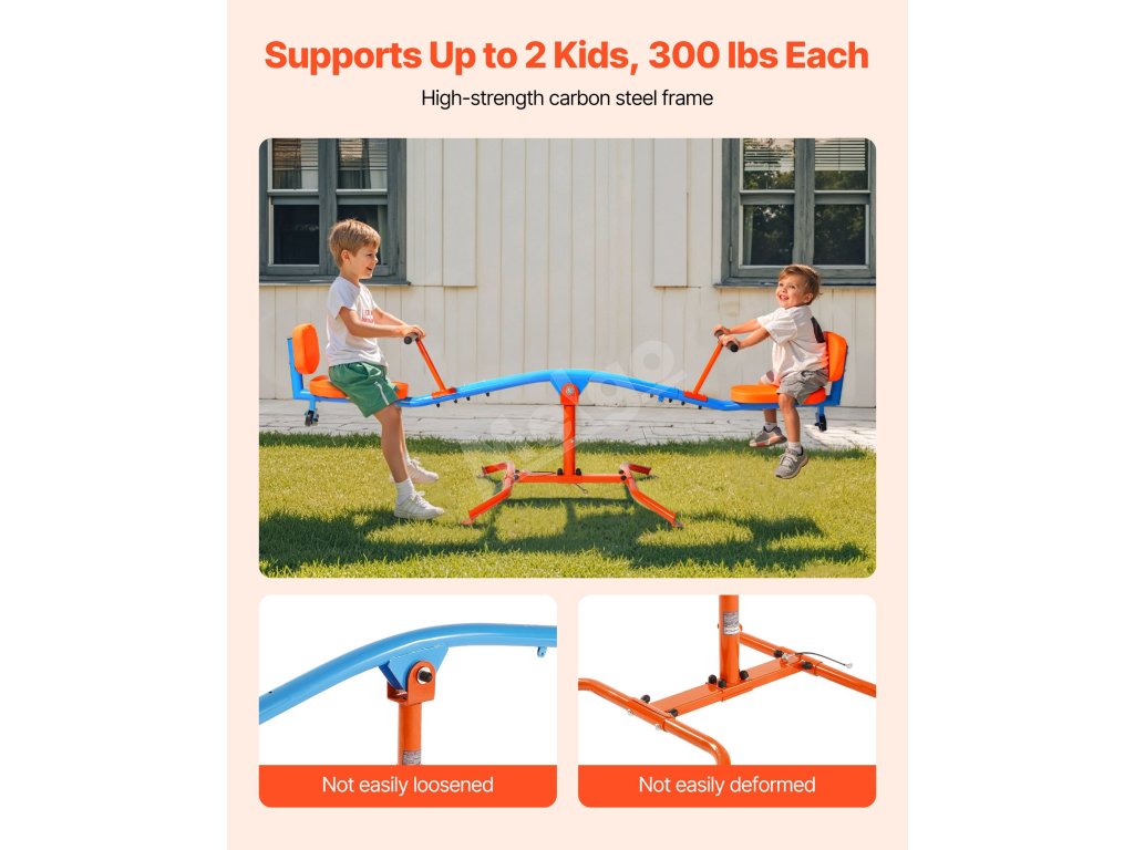 Vyrobený z odolnej uhlíkovej ocele, teeter totter udrží až 300 libier / 136 kg. Konštrukcia otáčajúca sa o 360° umožňuje deťom skákať hore a dole a zároveň sa otáčať, čo im dodáva zábavu a vzrušenie pri hre!