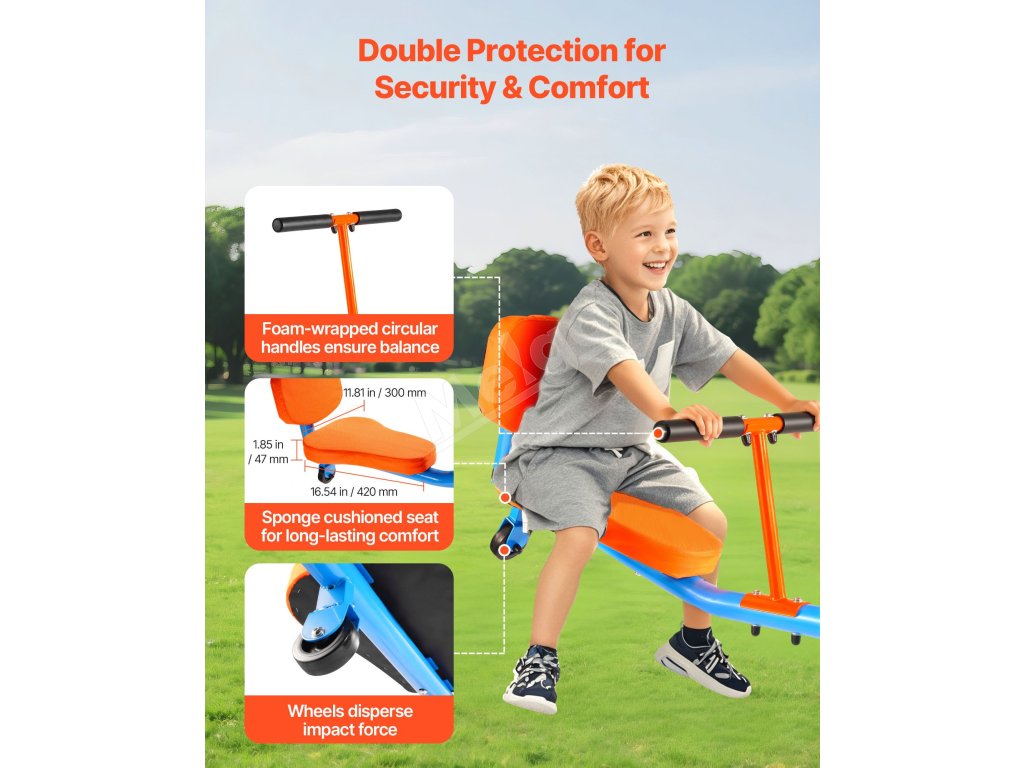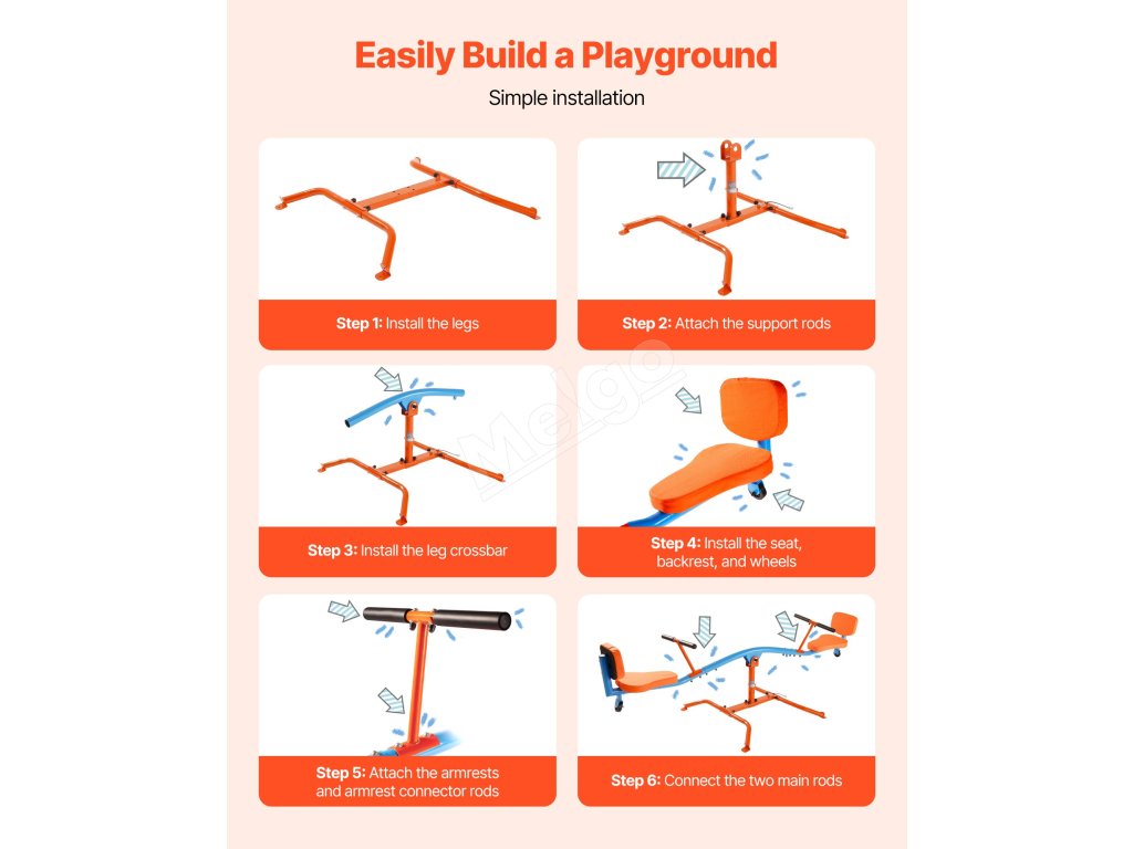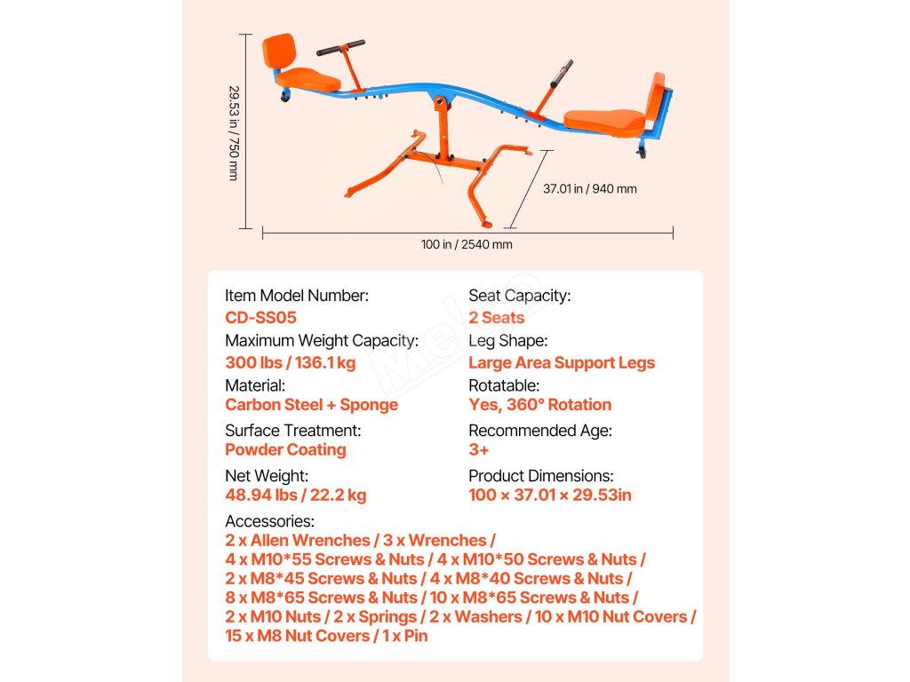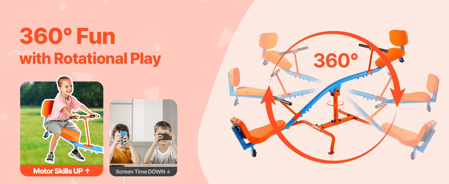 Vyrobený z odolnej uhlíkovej ocele, teeter totter udrží až 300 libier / 136 kg. Konštrukcia otáčajúca sa o 360° umožňuje deťom skákať hore a dole a zároveň sa otáčať, čo im dodáva zábavu a vzrušenie pri hre!