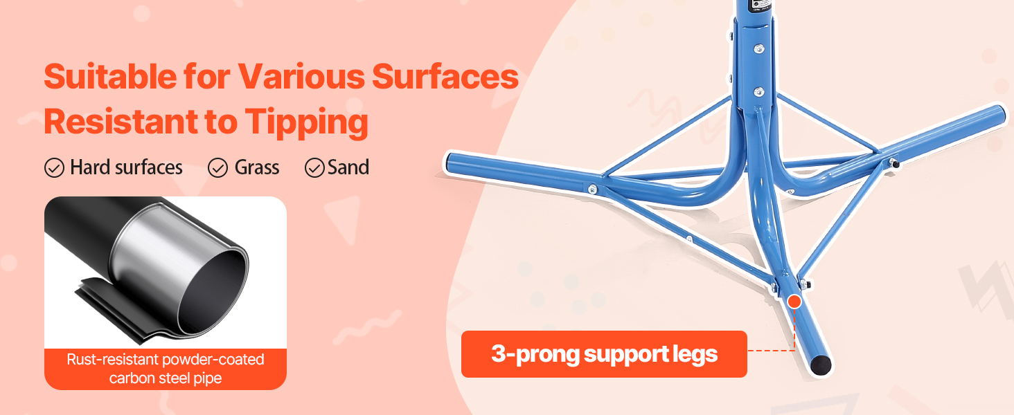 Vďaka 3 oporným nohám a vysokokvalitným práškovo lakovaným oceľovým rúrkam zostáva táto hojdačka stabilná na tráve, piesku alebo betóne. Vaše dieťa sa môže bezpečne hrať bez obáv z prevrátenia!