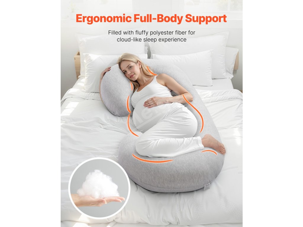 Tehotenský c-tvarovaný celotelový vankúš s prateľným poťahom