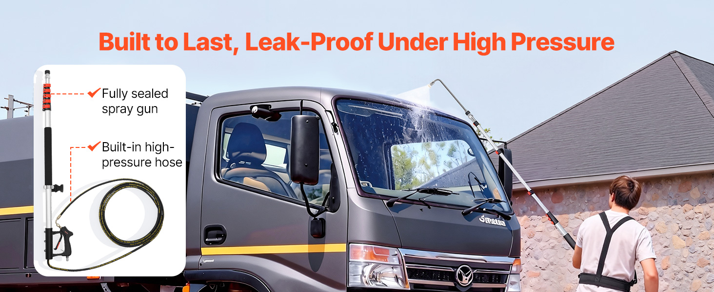 Táto predlžovacia tyč vysokotlakového čističa je vybavená úplne utesnenou striekacou pištoľou a vstavanou vysokotlakovou hadicou, čo pomáha udržiavať stabilnú prevádzku a minimalizovať úniky pri vysokom pracovnom tlaku.