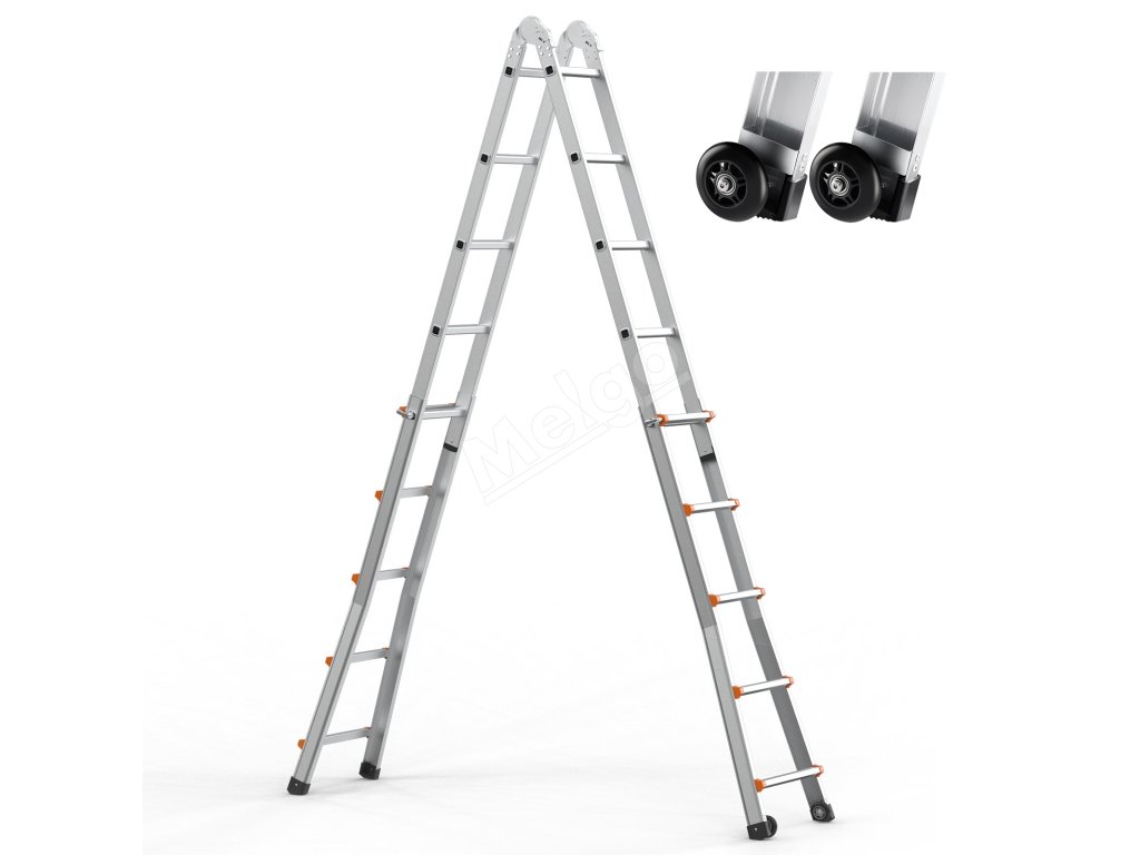 Tento multifunkčný výsuvný rebrík s rámom A má jedinečnú konštrukciu závesu, ktorá umožňuje jednoduché prepínanie medzi tromi uhlami: 35°, 107° a 180°, ktoré spĺňajú rôzne výškové požiadavky.