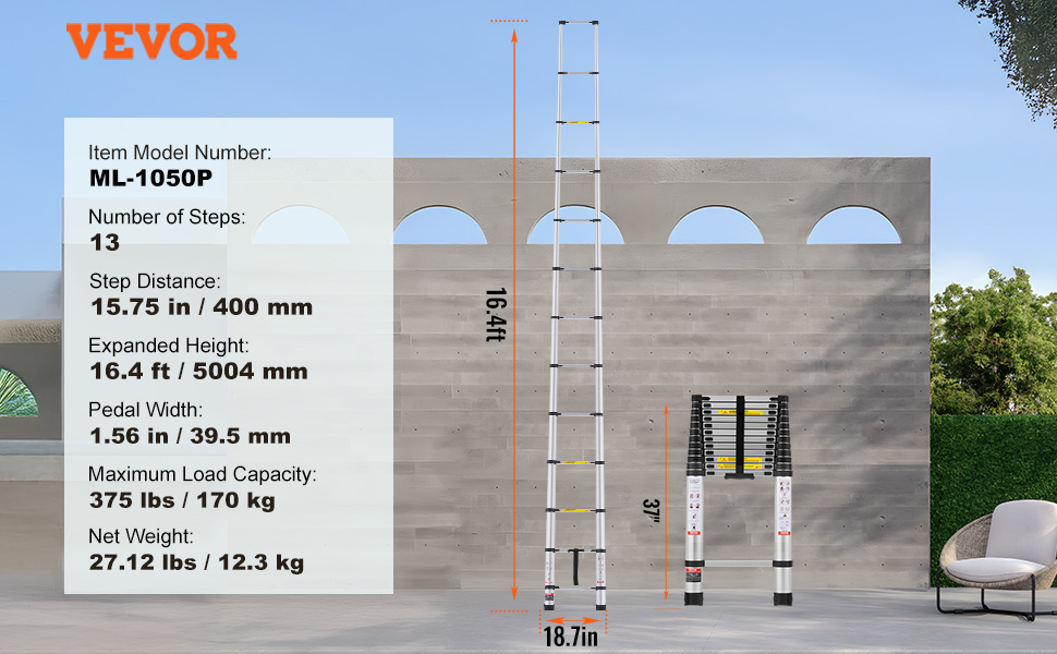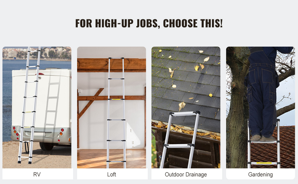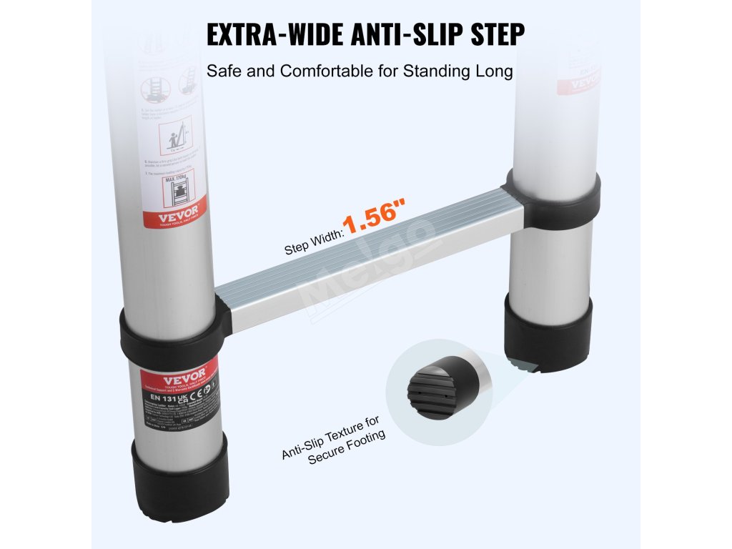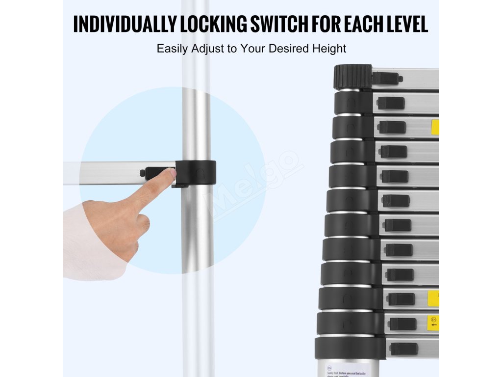 Tento teleskopický rebrík je vyrobený z odolného hliníka v kombinácii s nylonovými spojmi pre väčšiu pevnosť a dlhú životnosť. Má vysokú nosnosť, je stabilný a odolný a ľahko sa ovláda, čím spĺňa všetky vaše rôzne potreby na domáce a komerčné použitie.