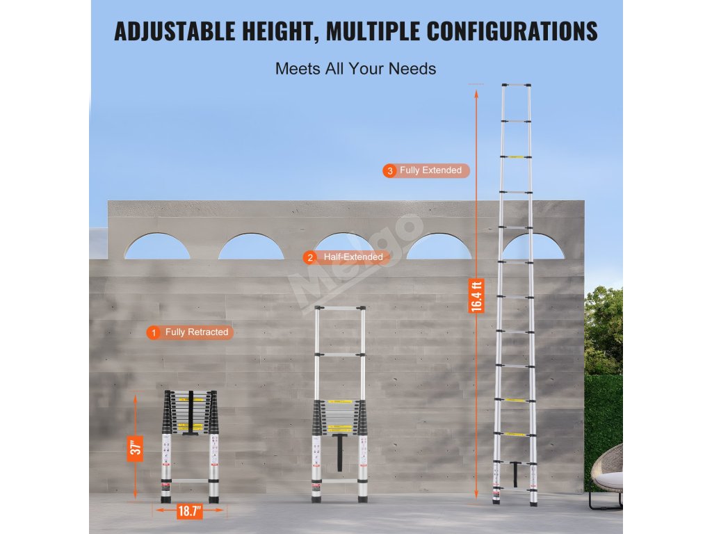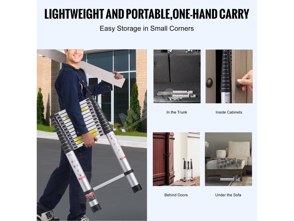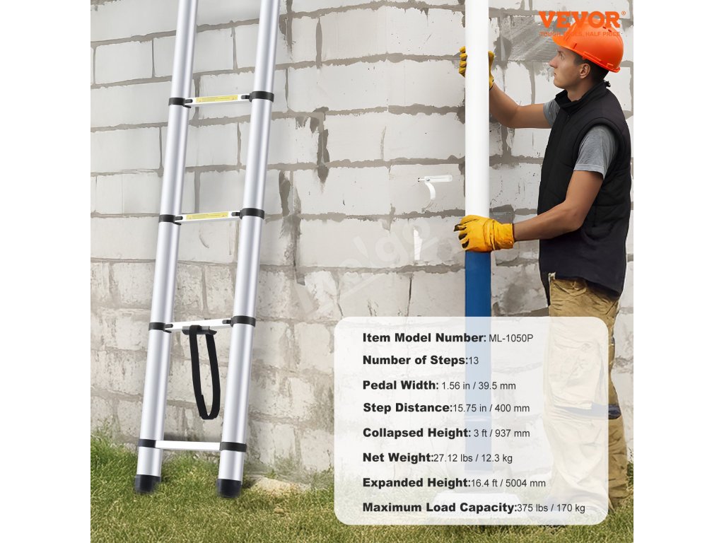 Teleskopický rebrík 16.4ft hliníkový nosnosť 375 lbs s protišmykom