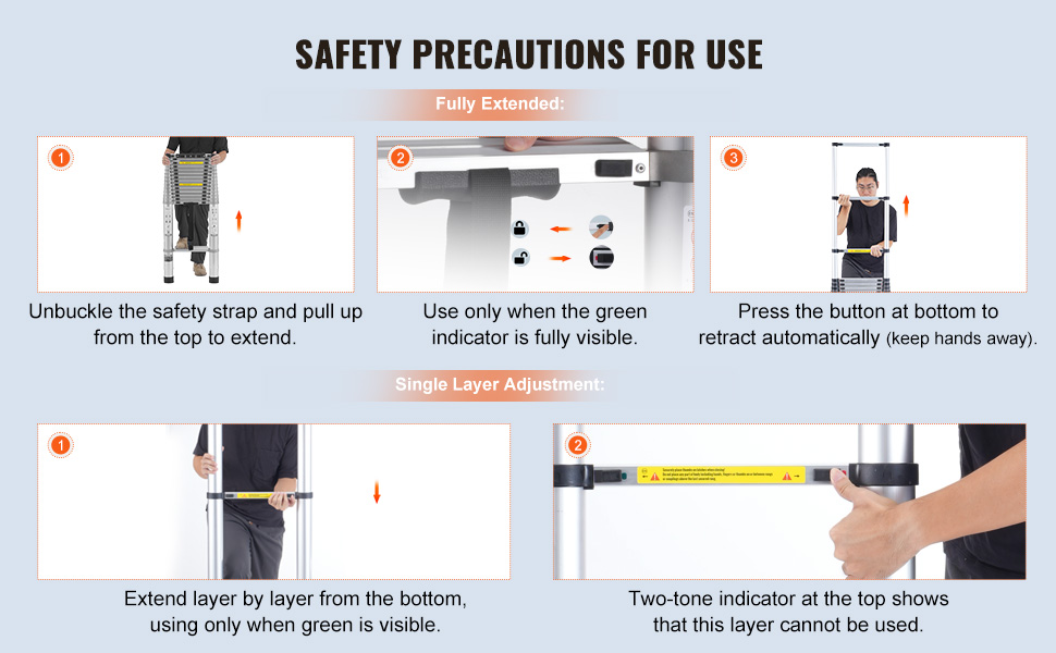 Rebrík možno úplne vysunúť alebo nastaviť na jednotlivé úrovne. Rôzne formy výsuvu si vyžadujú rôzne spôsoby ovládania, preto sa uistite, že sú tlačidlá počas používania uzamknuté, aby ste predišli nehodám.
