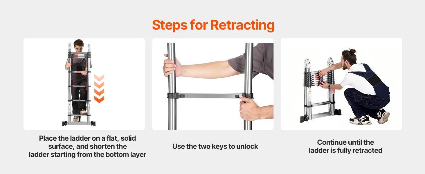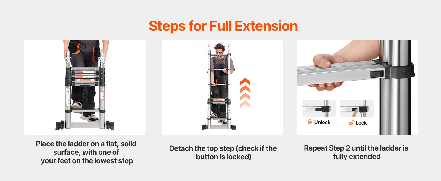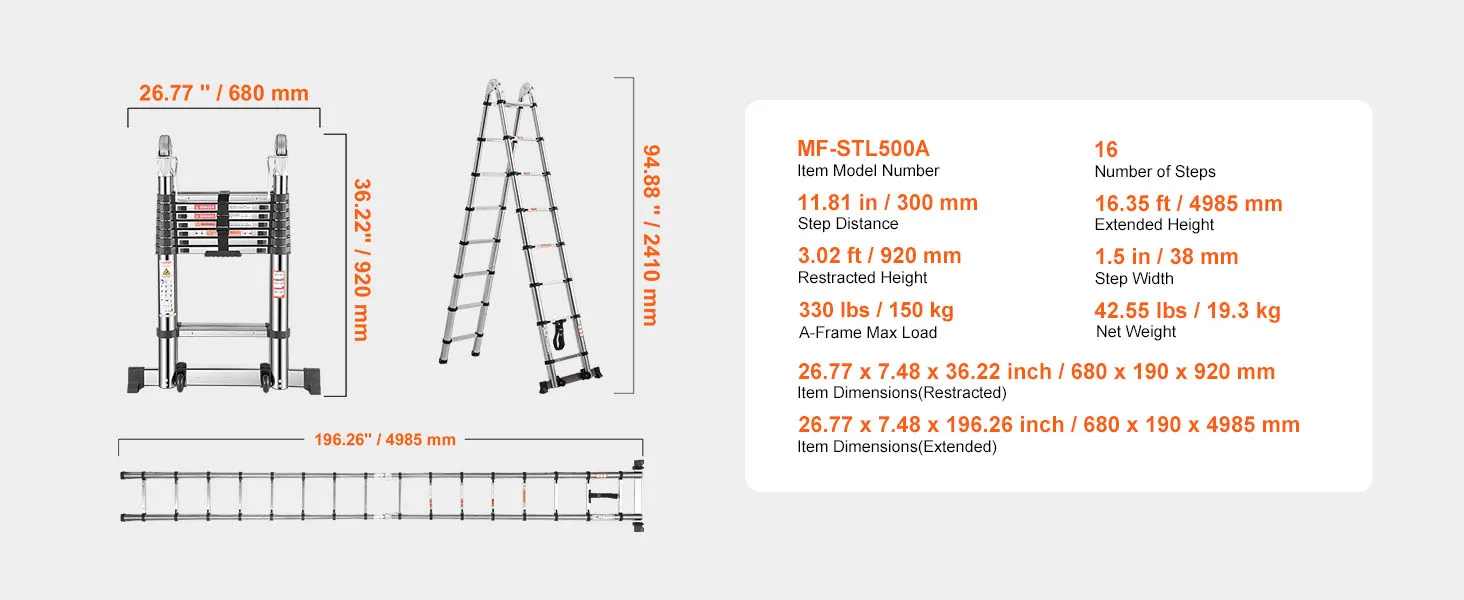 Tento rebrík s A-rámom, vyrobený z odolnej ocele a nylonových spojovacích prvkov pre väčšiu pevnosť, poskytuje stabilitu pre domáce aj komerčné použitie s nosnosťou 375 libier. Viactlačidlový výsuvný dizajn zabezpečuje jednoduché ovládanie. Široké stupne poskytujú pohodlie a stabilitu, čo uľahčuje výškové úlohy.