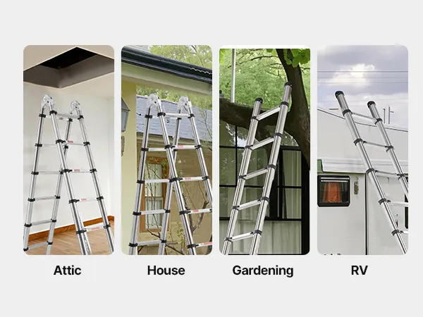 Teleskopický rebrík: Vysúvanie pomocou viacerých tlačidiel pre jednoduchú prenosnosť