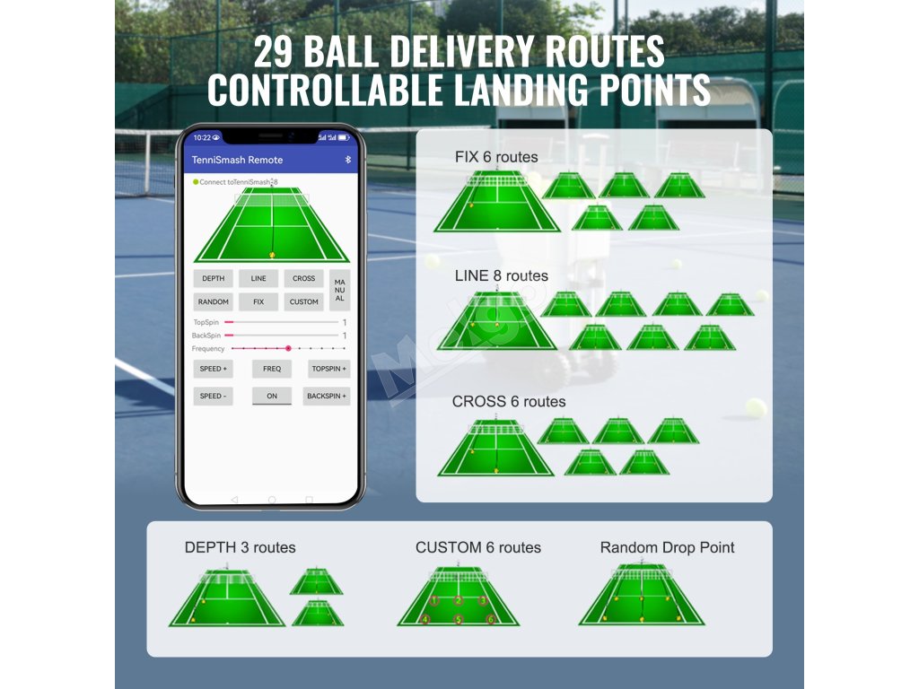 Automatický tenisový výhozník 150 lôpt, 5 motorov, 2+h, ovládanie app