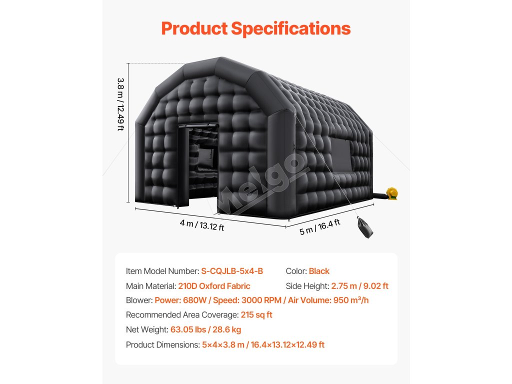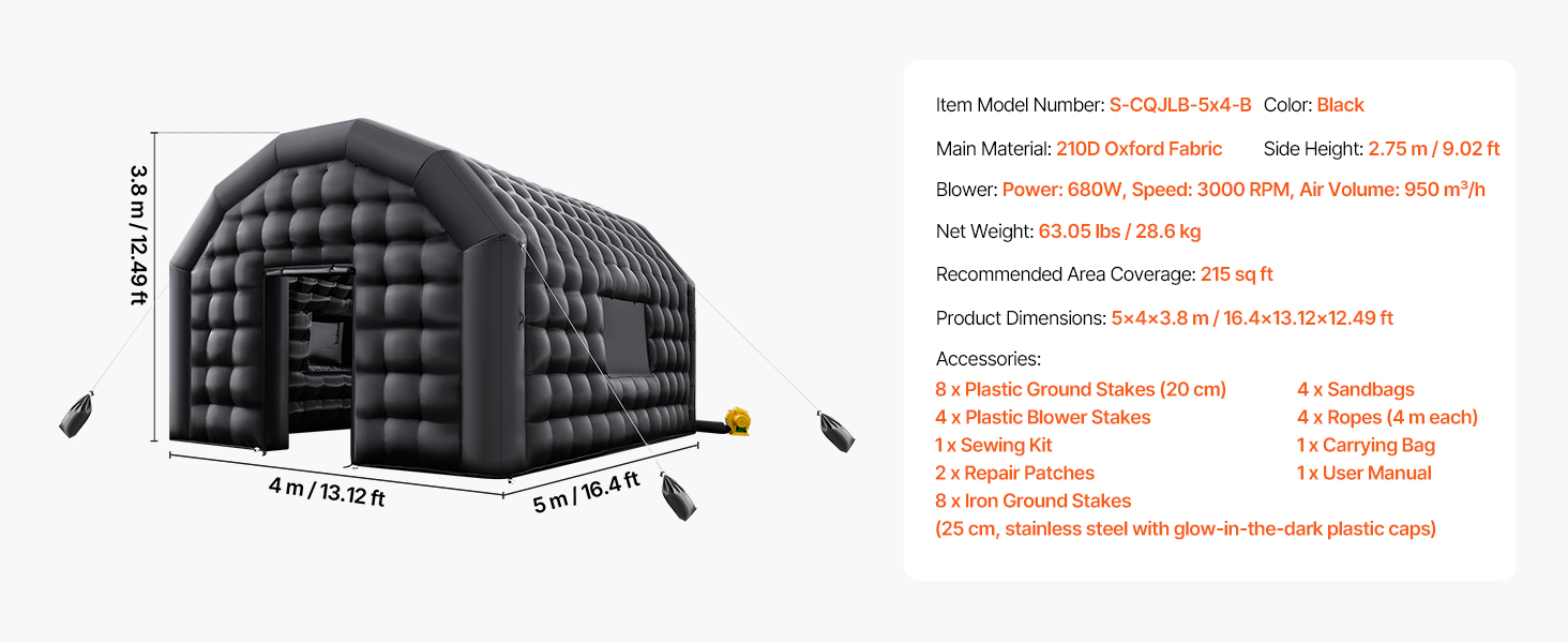 Tento nafukovací stan s rozlohou 215 štvorcových stôp ponúka veľký priestor na svadby, narodeniny, Halloween a epické párty. Rýchlo sa postaví a zbalí, je kompatibilný s diskotékovým osvetlením, má odolnú tkaninu Oxford a zosilnenú stabilitu, vďaka čomu sa stane vaším spoľahlivým partnerom na každej oslave.