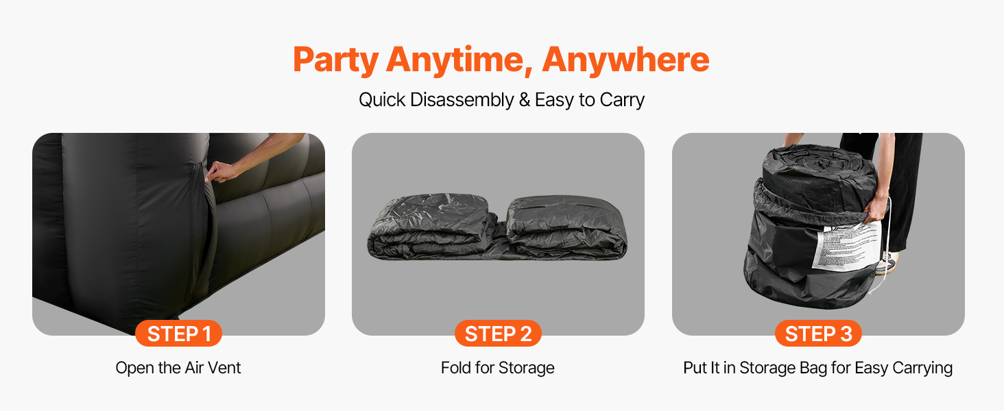 Tento nafukovací párty stan sa rýchlo vyfúkne a zloží, zmestí sa do prenosnej tašky na jednoduchú prepravu - ideálny na zostavenie a zloženie na cestách.