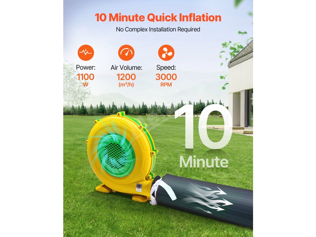 Nafukovací párty stan 9×6×4 m, 1100W ventilátor, 2 okná, pieskové vaky
