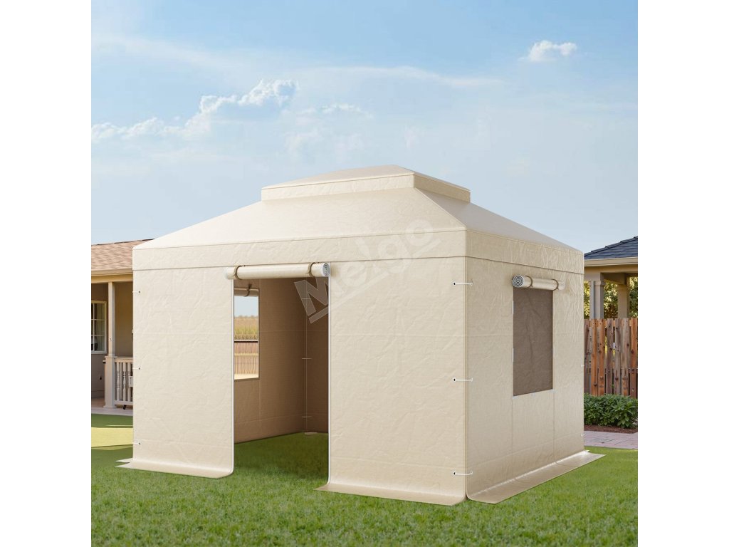 Plachta na altánok 3.05×3.65 m, dvojitá strecha, s bočnými stenami, pe