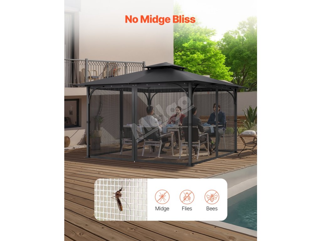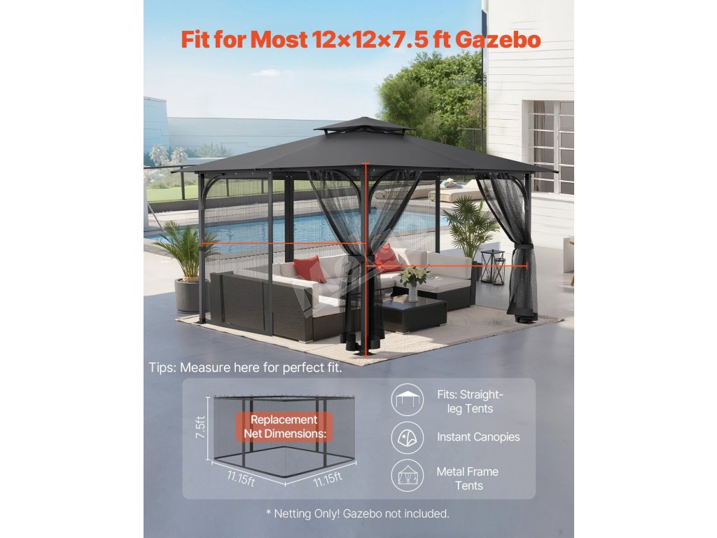 Sieť na altánok 12×12×7.5 FT, 4 panely, dvojitý zips, len sieť