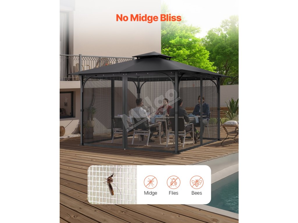 Sieťovina na altánok 10×10×6.5 ft, 4 bočné panely, dvojitý zips