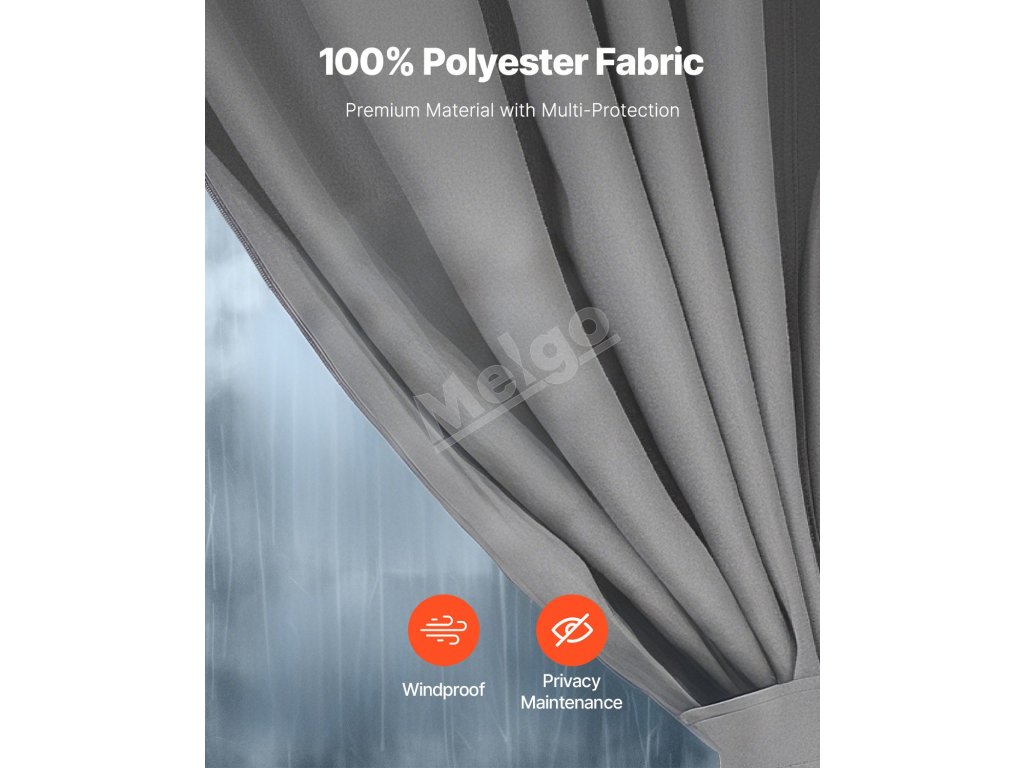 Tento odolný záves je určený pre altánky s rozmermi 10' x 12' x 6,7' a je vyrobený z nepremokavého polyesteru s gramážou 160 g/m2 na ochranu pred slnkom. Obojstranný zips umožňuje jednoduché nastavenie, zatiaľ čo hliníkové priechodky zabezpečujú rýchlu inštaláciu. Trojdielna konštrukcia s viazaním poskytuje stabilnú oporu pre vaše vonkajšie súkromie.
