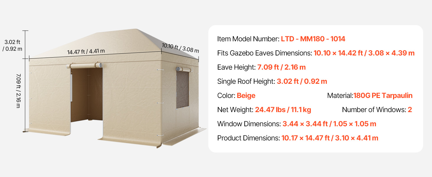 | Vhodný pre rozmery odkvapu altánku | 10.10 × 14,42 ft / 3,08 × 4,39 m |