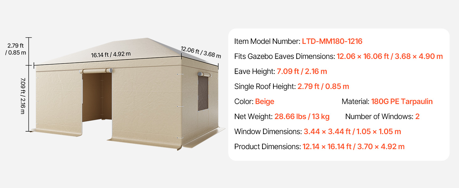 | Vhodný pre rozmery odkvapu altánku | 12.06 × 16,06 ft / 3,68 × 4,90 m |