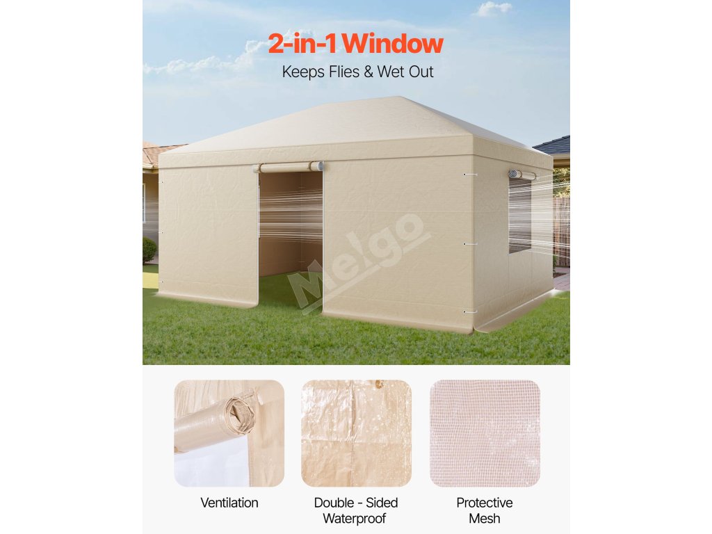 Tento zimný náhradný kryt je určený pre altánky s rozmermi 12 x 16 stôp. Plachta z PE 180G s odkvapom na zvýšenú ochranu. Dvojúčelové okná zo sieťoviny ponúkajú vetranie. Zapínanie na háčik a slučku zabezpečuje jednoduchú inštaláciu. Je ideálny na uskladnenie vozidiel, športového náradia, záhradného náradia.