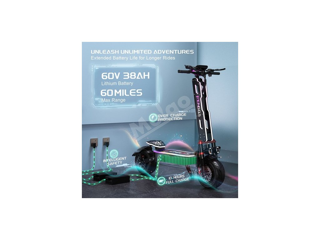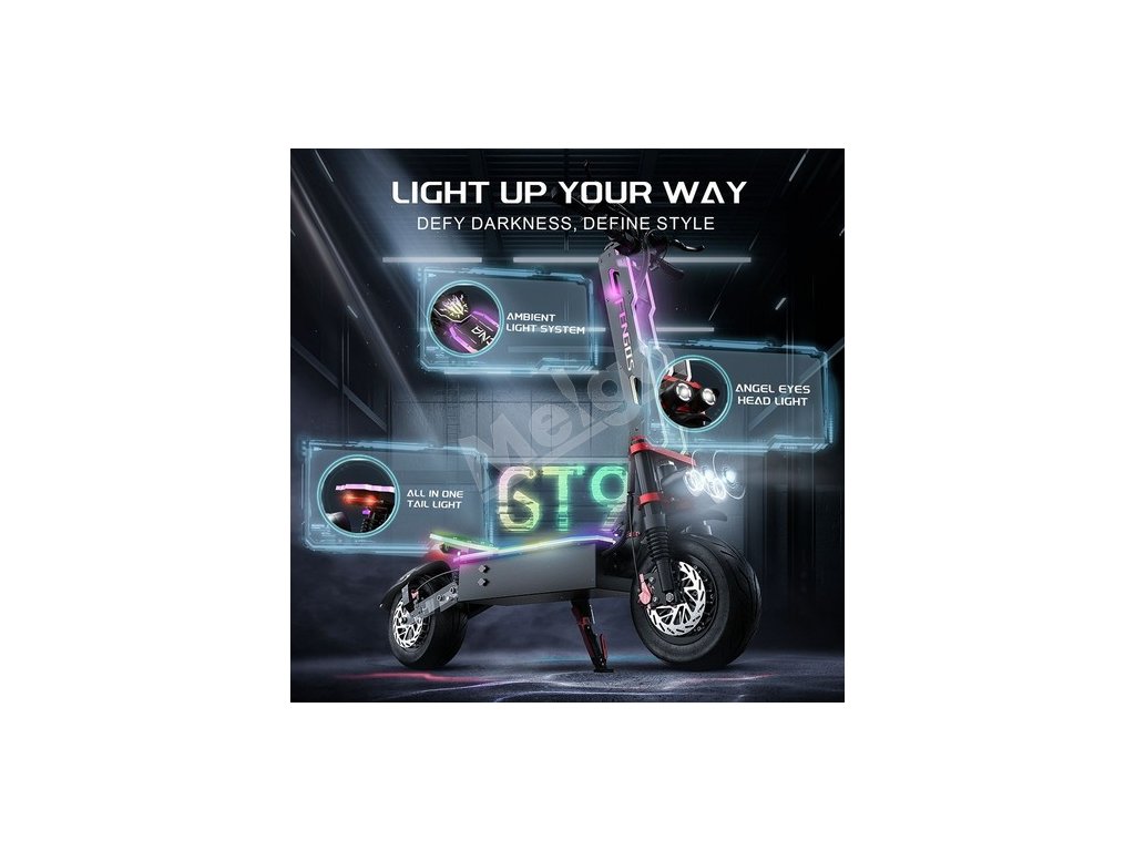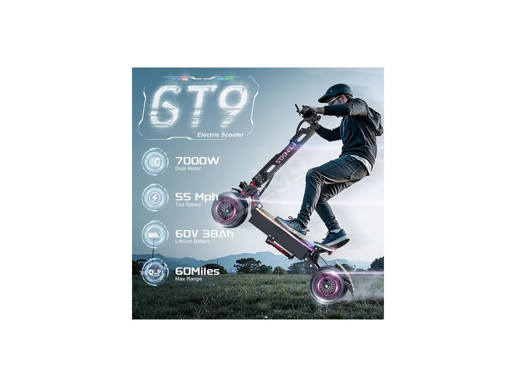 - Vybavený dvoma výkonnými 3500W motormi poskytuje GT9 úžasný výkon, okamžitú akceleráciu, ľahké stúpanie a žiadny strach zo zložitých podmienok na ceste. Vďaka vysoko výkonnej lítiovej batérii 60 V 38 Ah dokáže na jedno nabitie dosiahnuť mimoriadne dlhý dojazd až 96 km, čím spĺňa viacnásobné potreby každodenného dochádzania do práce a jazdy na dlhé vzdialenosti.