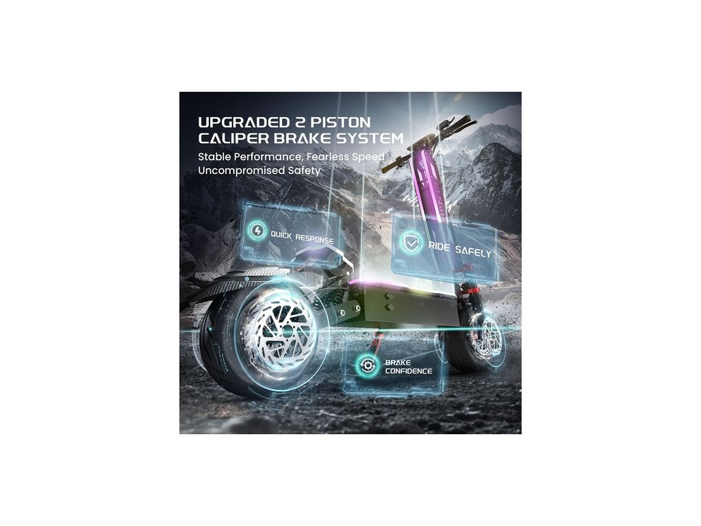 - Maximálna rýchlosť môže dosiahnuť 80 km/h, čím uvoľníte extrémnu rýchlosť a vychutnáte si vášnivú cestu. Vylepšené 12-palcové široké protišmykové pneumatiky poskytujú silnejšiu priľnavosť a stabilitu pri každej zákrute a šprinte a ďalej sa zlepšuje priechodnosť terénom.