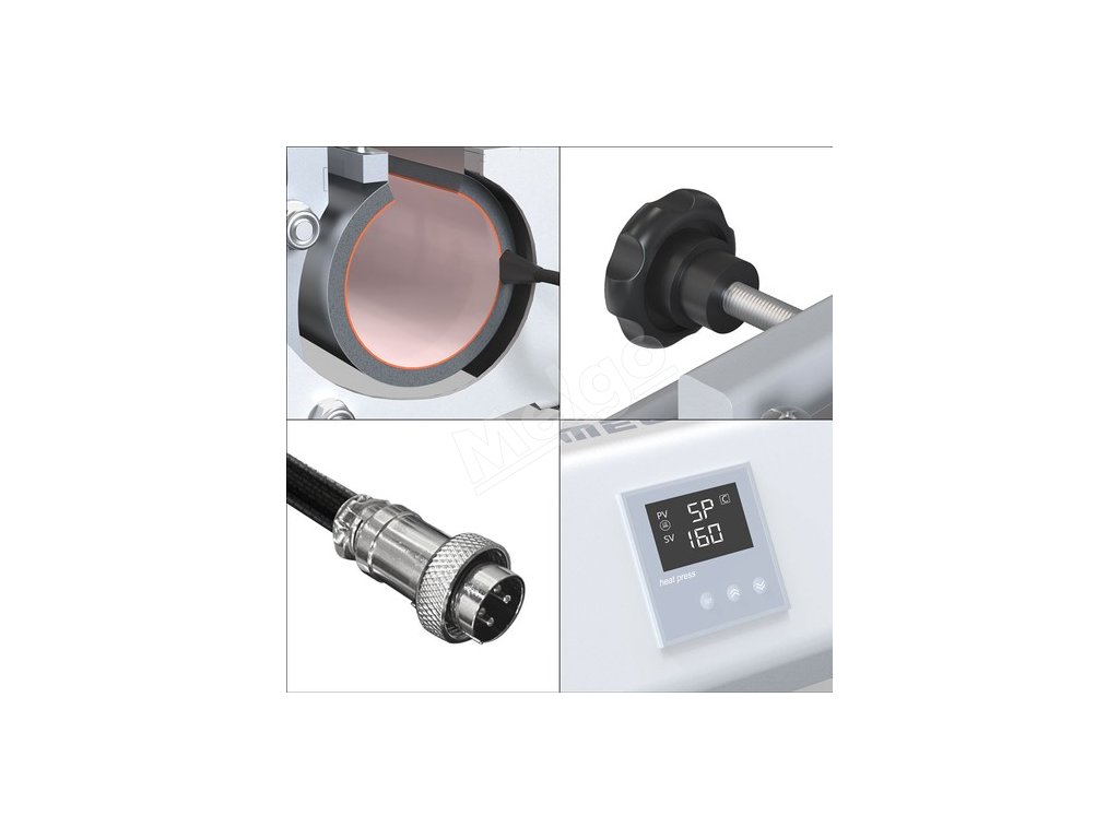 Stroj na tepelné lisovanie hrnčekov Mecpow MP30 je vybavený modernizovaným ovládacím panelom LCD na jednoduchú obsluhu a presné ovládanie času a teploty na splnenie rôznych požiadaviek na tepelné lisovanie. Vysokokvalitná silikónová vnútorná vložka a trojnásobný počet ohrievačov zabezpečujú rovnomerné rozloženie tepla a vynikajúci efekt lisovania, čím zakaždým zabezpečujú bezstarostnú prevádzku.