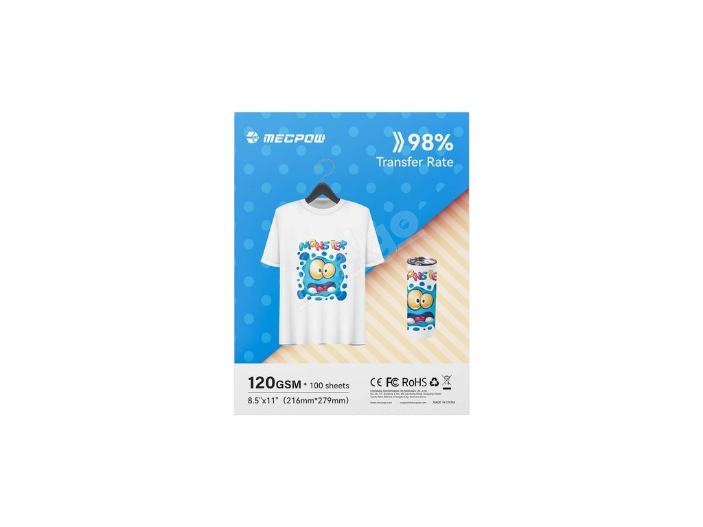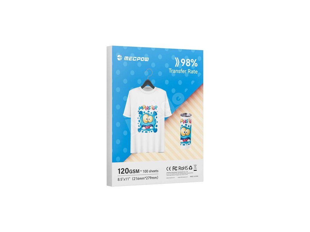 Svojou hrubšou a odolnejšou konštrukciou je sublimačný papier Mecpow odolný voči pokrčeniu a namáhaniu, čím minimalizuje riziko zaseknutia tlačiarne. Každý hárok je starostlivo zabalený, aby sa zabránilo jeho zvlneniu, a logo na zadnej strane uľahčuje identifikáciu strany tlače.