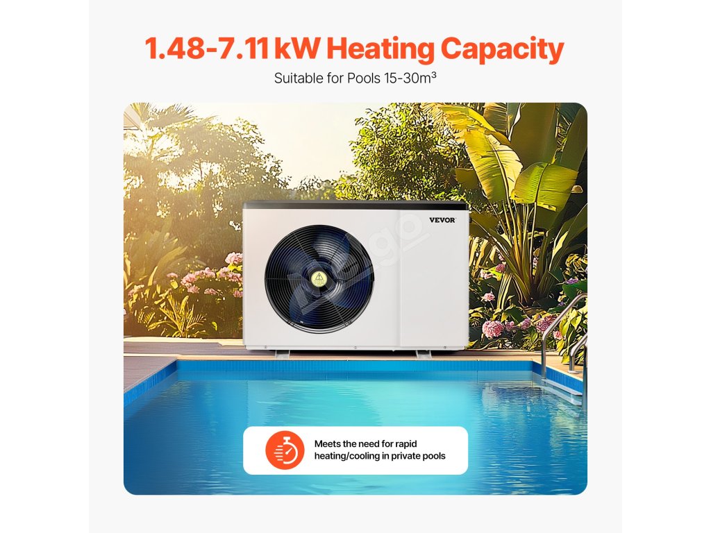 Elektrická bazénová tepelná pumpa 1,48–7,11 kW, 15–30 m³, 220–240 V
