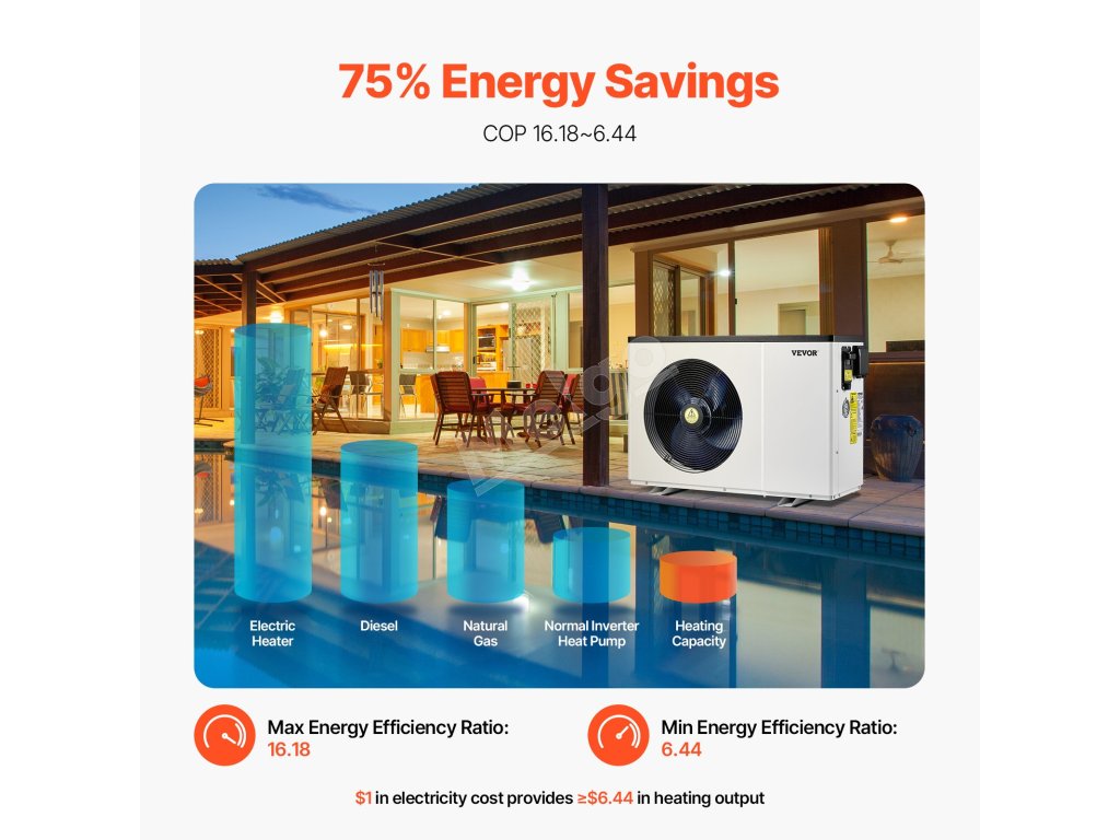 Toto bazénové tepelné čerpadlo s vysoko výkonným kompresorom na rýchly ohrev a stálu teplotu vody. Poháňané čistou energiou znižuje náklady a vplyv na životné prostredie. Používateľsky prívetivý ovládací panel a technológia redukcie hluku zabezpečujú pohodlné a tiché plávanie.