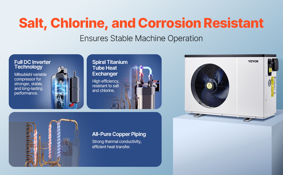Je skonštruované tak, aby odolávalo náročným podmienkam, odoláva soli, chlóru a korózii, čím chráni jednotku pred poškodením a znižuje potrebu opráv a výmeny, čím šetrí vaše úsilie.